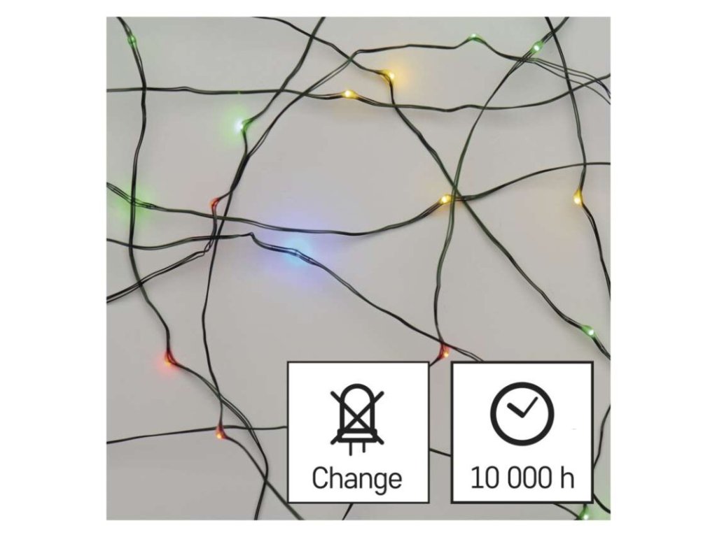 barva drátu: zelená|barva světla: multicolor|časovač: ano|dálkový ovladač: ne|délka přívodu: 5 m|funkce: svítí|krytí: IP44|LED mezera: 10 cm|materiál: kov|možnost propojení: ne|počet LED: 40|použití: venkovní i vnitřní|příkon: 2,1 W|prodejní obal: 1 ks, krabice|produkt: nano řetěz|pro výšku stromu: 100 cm|rozměr: 4 m|tvar: nano|typ napájení: síťový adaptér|velikost LED: 3 mm (nano)|vstupní napětí: 230 V AC|výstupní napětí: 3,5 V DC|záruční doba: 2 roky|životnost: 10 000 hodinDoplňkové parametry