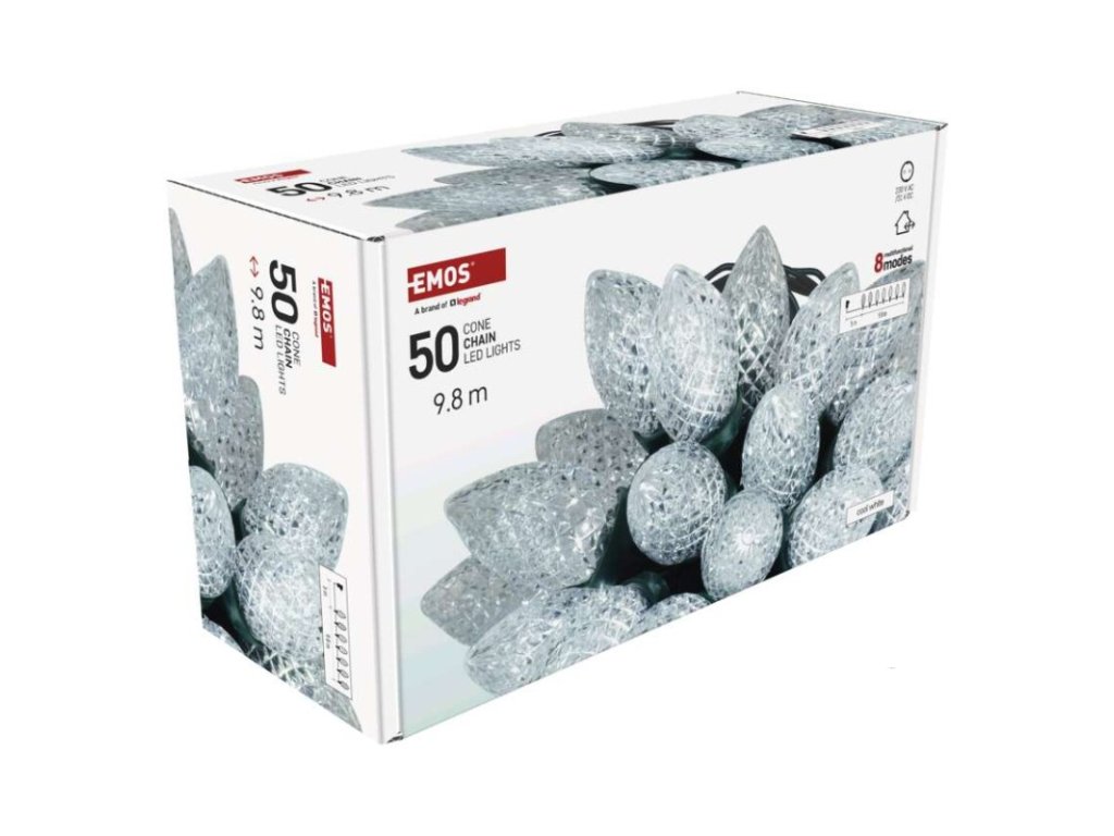 LED vánoční řetěz – šišky, 9,8 m, venkovní i vnitřní, studená bílá, programy