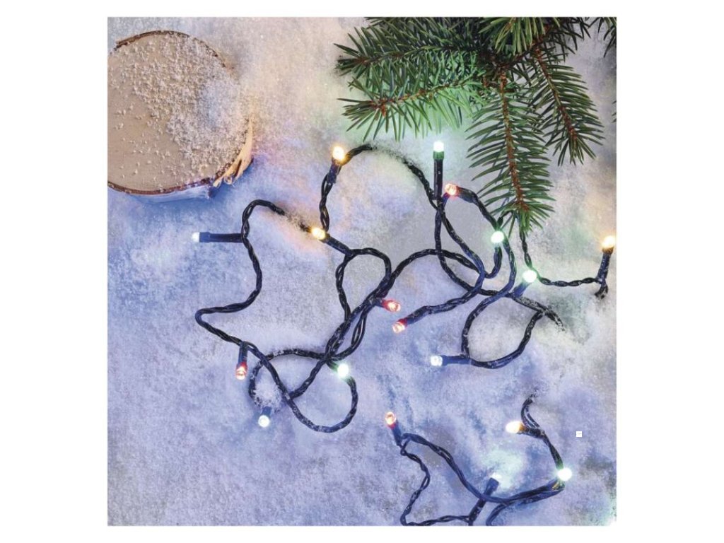 barva drátu: zelená|barva světla: multicolor|časovač: ne|dálkový ovladač: ne|délka přívodu: 5 m|funkce: 8 módů (multifunkce)|krytí: IP44|LED mezera: 10 cm|materiál: PVC|možnost propojení: ne|počet LED: 180|použití: venkovní i vnitřní|příkon: 3,6 W|prodejní obal: 1 ks, krabice|produkt: řetěz|pro výšku stromu: 200 cm|rozměr: 18 m|tvar: klasický|typ napájení: síťový adaptér|velikost LED: 5 mm|vstupní napětí: 230 V AC|výstupní napětí: 31 V DC|záruční doba: 2 roky|životnost: 10 000 hodinDoplňkové parametry