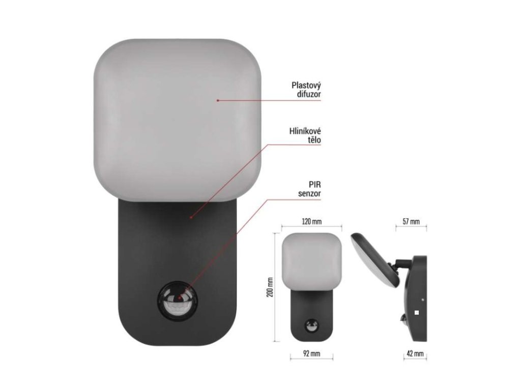 barva: antracit|barva světla: teplá bílá|dosah PIR senzoru: 8 m|energetická třída použitého světelného zdroje: G|fotovoltaický článek: ne|frekvence: 50/60 Hz|index podání barev (CRI): > 80|kategorie: CLASSIC|krytí: IP44|materiál: hliník|materiál difuzoru: plast|napájení: 230 V AC|napětí: 220-240 V~|patice (uchycení žárovky): –|PIR senzor: ano|příkon: 12,8 W|prodejní obal: 1 ks, krabička|řada: NIKA|rozměr: 120 × 120 × 200 mm|rozsah pracovní teploty: -20 ~ +40 °C|soumrakový spínač: ano|světelný tok: 900 lm|teplota chromatičnosti: 3000 K|vestavěný vypínač: ne|žárovka součástí balení: –|zdroj světla: LED|životnost: 25 000 hDoplňkové parametry