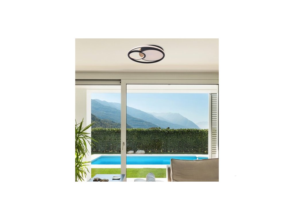 Díky svému jedinečnému designu, vysokému jasu a mnoha dalším funkcím je inteligentní stropní lampa Leola fantastickou volbou pro mnohé moderní obývací pokoje. Kovová lampa v černé barvě je doplněna bílým plastovým stínítkem, přičemž design se vyznačuje kombinací menších a větších kruhových prvků. Lampa Leola má zabudovaný LED světelný zdroj energetické třídy G s výkonem 81 W, svítivostí 3800 lumenů se stínítkem, 9100 lumenů bez stínítka a s životností 15000 hodin. Teplotu barvy stropního světla lze nastavit pomocí přepínače nebo dálkového ovládání: Můžete si vybrat mezi 3000, 4000 nebo 6000 K. Lampu lze stmívat, t. j. nastavit její jas dálkovým ovládáním, a je také vybavena paměťovou funkcí s možností nastavení spínače a funkcí časovače ovládaného dálkovým ovládáním. Dalším doplňkem je noční funkce. Stropní lampa má průměr 480 mm a vzdálenost od stropu 75 mm.
