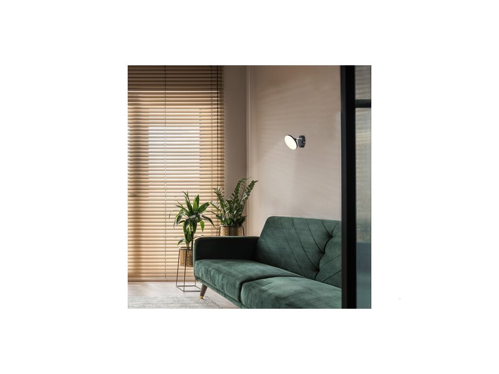 Nástěnné svítidlo Madi v moderním stylu je praktickou volbou do obývacího pokoje, ložnice nebo pracovny. Matné černé kovové tělo lampy doplňuje bílé plastové stínítko a lampu lze připevnit na zeď pomocí malého kulatého ozdobného podstavce. Navzdory své malé velikosti je svítidlo Madi účinné, neboť jeho široké stínítko připomínající misku vyzařuje světlo na velkou plochu. Kromě toho lze nastavit úhel hlavy lampy směrem nahoru a dolů, což vám umožní ovládat světlo nástěnné lampy podle vašich představ. Svítilna Madi má zabudovaný LED světelný zdroj energetické třídy G o výkonu 4 W, svítivostí 370 lumenů se stínítkem, 500 lumenů bez stínítka a s opravdu výjimečnou životností: až 30 000 hodin! Světelný zdroj o barevné teplotě 3000 K osvětluje teplým bílým světlem, které pomáhá vytvářet útulnou, domácí atmosféru a uvolňuje oči. Rozměry nástěnného svítidla Madi jsou tyto: průměr 120 mm, vzdálenost od stěny 135 mm, instalační průměr 90 mm.