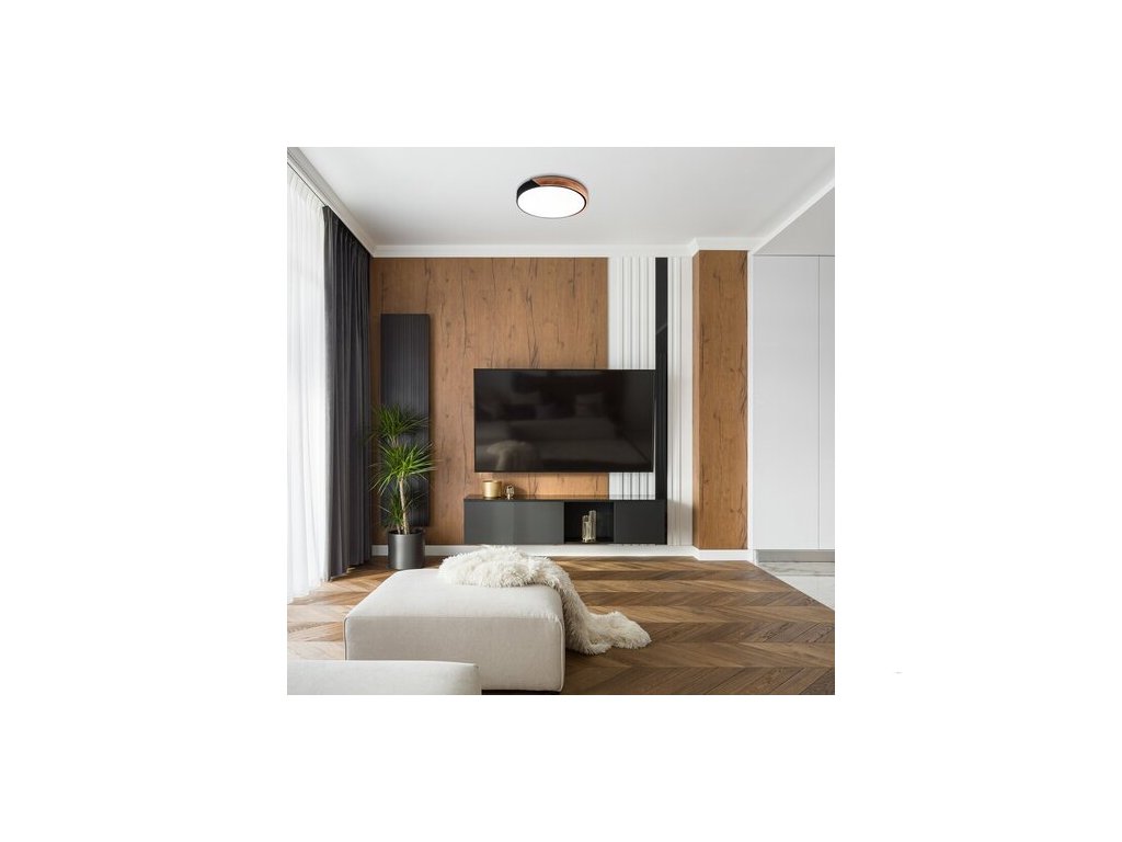 Stropní svítidlo Maple v severském stylu doporučujeme těm, kteří chtějí kombinovat moderní styl s přirozeností. Tento matný černý model, který je vyroben z kovu a dřeva, dodá zařízení obývacího pokoje nebo ložnice trochu tepla. Kulaté svítidlo je doplněno bílým plastovým stínítkem. Svítidlo Maple obsahuje vestavěný světelný zdroj LED s výkonem 24 W, světelný tok 1890 lumenů a barevnou teplotu 4000 K. Životnost svítidla vyzařujícího teplé bílé světlo je 30000 hodin. Průměr tohoto stropního svítidla vyrobeného v extrémně tenkém provedení je 415 mm, vzdálenost od stropu je pouze 50 mm. Na tento výrobek poskytujeme záruku 5 let.