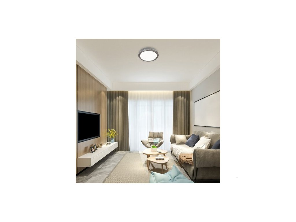 Moderní vzhled velkého, kulatého stropního svítidla Matea je spojen s celou řadou skvělých funkcí, takže ho z celého srdce doporučujeme do každého moderního obývacího pokoje, ložnice nebo pracovny. Hnědé inteligentní svítidlo vyrobené z kovu je doplněno bílým akrylovým stínidlem. Svítidlo Matea může být ztlumené, to znamená, že jas lze podle potřeby měnit pomocí dálkového ovladače. Jeho barevnou teplotu je také možné nastavit mezi 3000-6000 K pomocí nástěnného vypínače nebo dálkového ovladače. Mezi další doplňky patří paměťová funkce, kterou lze ovládat dálkovým ovladačem nebo nástěnným vypínačem, dále časovač a funkce nočního osvětlení. Kromě toho má svítidlo Matea funkci podsvícení. Vestavěné LED zdroj světla tohoto stropního svítidla má výkon 40 W, světelný tok 3 200 lumenů a životnost 30 000 hodin. Průměr svítidla Matea je 500 mm, vzdálenost od stropu je 75 mm.