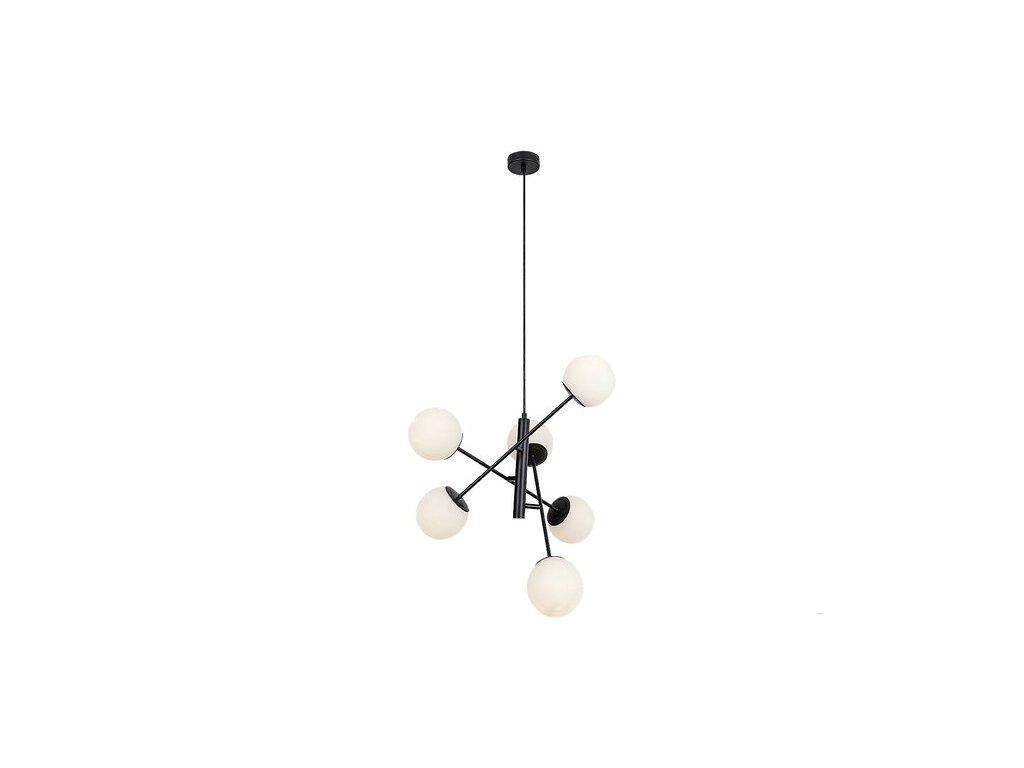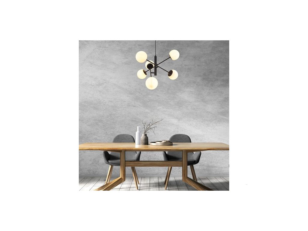 Závěsné svítidlo Rábalux Meduza si oblíbí příznivci skandinávského stylu. Kovové tělo svítidla má elegantní matnou černou povrchovou úpravu, zatímco zaoblená skleněná stínítka jsou bílá. Závěsná lampa – jak naznačuje její název – skutečně připomíná medúzu, protože šest hlavic lampy se nachází na koncích nosných tyčí, které se rozvětvují od středu. Klasická barevná kombinace a zajímavý tvar dodávají lampě atraktivní a výrazný vzhled. Tento model může být dobrou volbou do obývacího pokoje, jídelny nebo ložnice – do těchto místností doporučujeme zejména teplé nebo přirozené bílé světlo. Závěsné svítidlo má šest objímek E14, do každé z nich lze vložit žárovku G45 o výkonu maximálně do 20 W. Výrobek se dodává bez světelného zdroje.