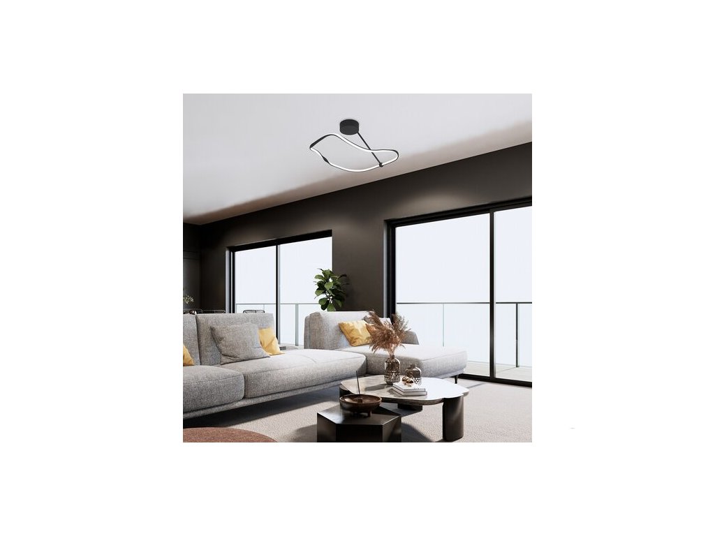 Stropní svítidlo Mirossi v moderním stylu s jedinečným vzhledem může být zajímavým kusem nábytku v obývacím pokoji nebo ložnici. Černý kovový model je doplněn bielyn silikonovým stínítkem a lze jej připevnit na strop pomocí malého kulatého ozdobného podstavce. Černá nosná tyč vyčnívající z ozdobné základny drží vzdušnou, zvlněnou hlavici lampy. Svítilna velkých rozměrů Mirossi má zabudovaný LED světelný zdroj energetické třídy F o výkonu 38 W, svítivostí 2240 lumenů se stínítkem, 4250 lumenů bez stínítka a s životností 20 000 hodin. Světelný zdroj s barevnou teplotou 4000 K osvětluje přirozeným bílým světlem a vytváří moderní, čistý efekt, který je ideální pro rušné místnosti v domácnosti. Díky své velikosti a jasu může tato stropní lampa účinně osvětlit větší místnost. Velikost svítidla Mirossi 630x550 mm, vzdálenost od stropu 270 mm, instalační průměr 150 mm.