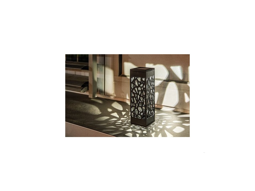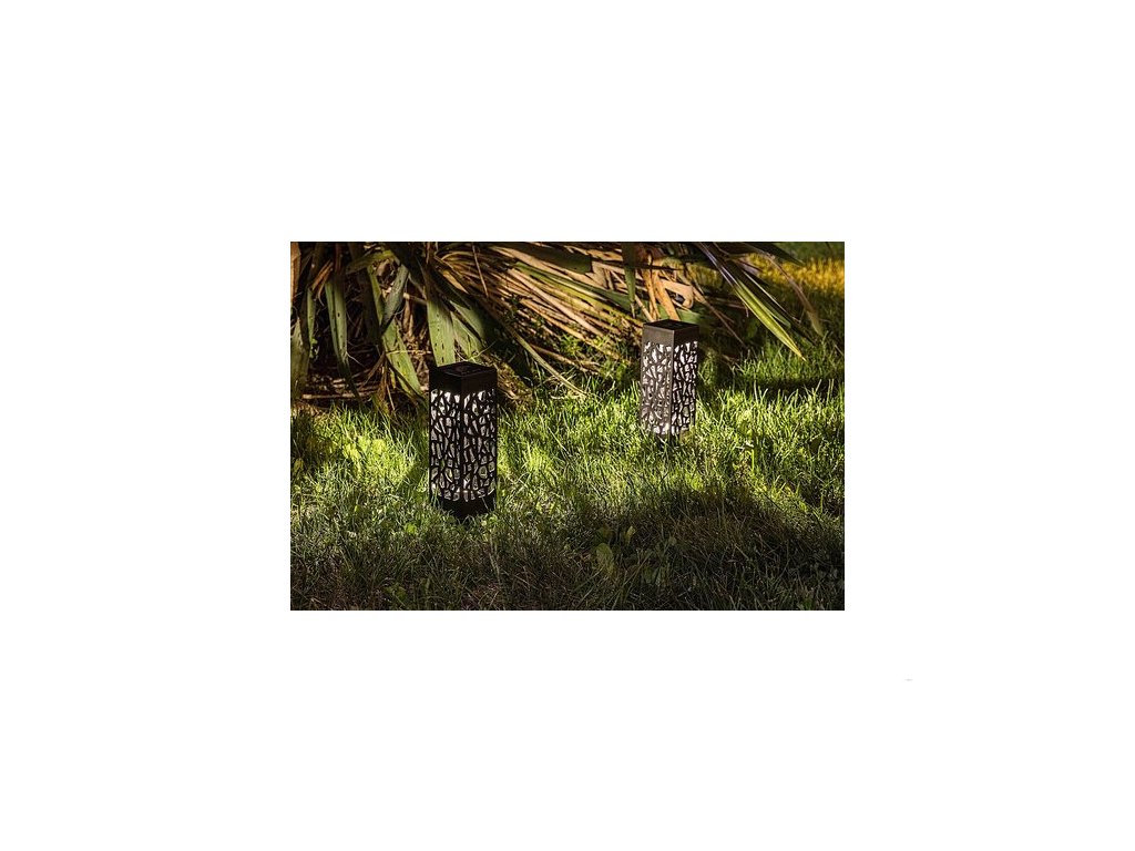 Solární lampa Mora bude velmi útulným doplňkem zahrady obklopující váš dům. Díky svému designu do země zůstává toto dekorativní světlo stabilní a zároveň vytváří teplé prostředí s teplým bílým světlem. Černá plastová solární lampa má vestavěný energeticky úsporný LED světelný zdroj s životností přibližně 20 000 hodin. Jeho výkon je 0,16 W, jeho svítivost je 2,4 lumen a teplota jeho barvy je 3 000 K. Údaje o solárních článcích: AAA NiMH 400 mAh. Výška čtvercového vnějšího dekorativního svítidla 60x60 mm je 180 mm. Má ochranu IP23, tj je chráněno proti proniknutí, jestliže jsou předměty s maximálním průměrem 12 mm (např. prsty) a proti pronikání dešťové vody do 60°.
