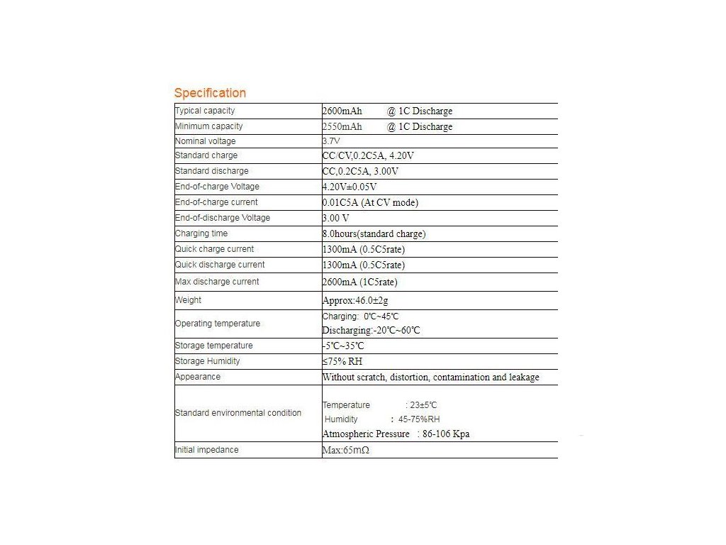 Nabíjecí článek Li-Ion ICR18650 3,7V/2600mAh TINKO, páskové vývodyDoplňkové parametry