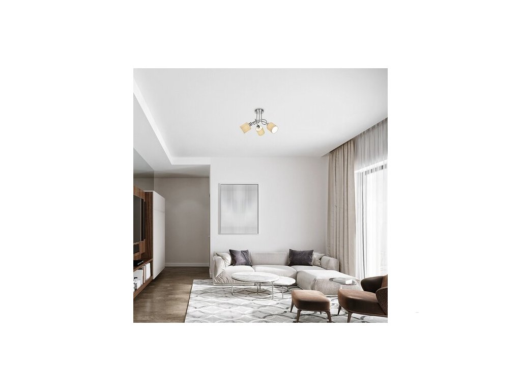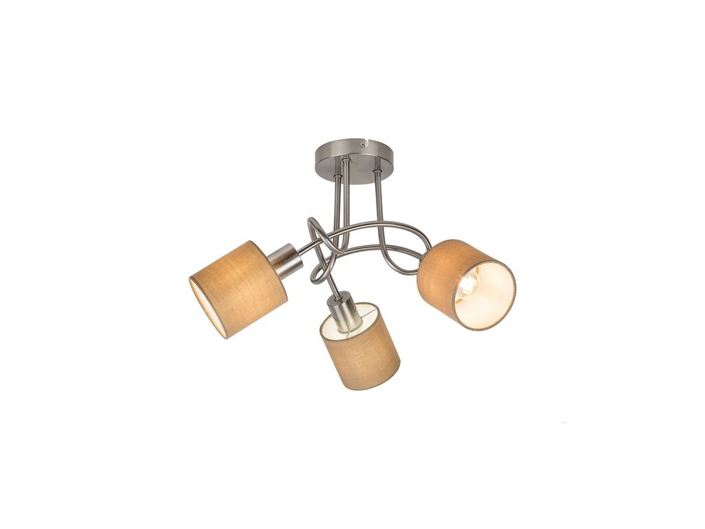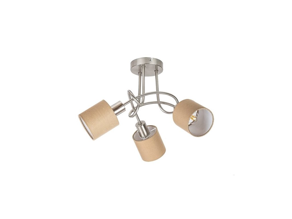 Trojité bodové svítidlo Natinal v moderním stylu bude zdrženlivým kusem nábytku ve vašem obývacím pokoji nebo ložnici. Kovové svítidlo v saténové chromové barvě je doplněno hnědými stínítky z textilu. Svítidlo lze připevnit na strop pomocí kulatého ozdobného podstavce. Válcové stínidla otevřené ve spodní části poskytují útulné osvětlení místnosti. Specialitou bodového svítidla je tělo, které se kroutí jako úponky a tři hlavy svítidla se dívají různými směry. Svítidlo Natinal může být použito s třemi žárovkami, každá s výkonem až 25W. Typ patice je E14. Pokud chcete vylepšit intimní a útulnou atmosféru, vyberte si pro toto svítidlo teplé bílé světelné zdroje. Šířka trojitého bodového svítidla Natinal je 440 mm, vzdálenost od stropu je 310 mm. Tento model se dodává bez světelných zdrojů.