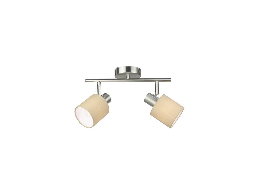 Dvojité bodové svítidlo Natina se vyznačuje moderním, decentním designem a barvami. Kovové stropní svítidlo vyrobeno v hnědo-saténové chromové barevné kombinaci je doplněno válcovými textilními stínítky. Díky nastavitelným stínítkům můžete nasměrovat světlo v místnosti podle přání, čímž získáte výkonnější zaostřené osvětlení nebo jen příjemné rozptýlené světlo. Svítidlo Natina se primárně doporučuje do obývacího pokoje, ale můžete ho namontovat i do ložnice nebo na chodbu. Podle toho, jaký efekt chcete dosáhnout, můžete pro něj zvolit teplé nebo přirozené zdroje bílého světla. Šířka dvojitého bodového svítidla je 360 mm a průměr okrouhlé dekorativní základny je 100 mm. Toto interiérové svítidlo je možné použít s dvěma energeticky úspornými žárovkami s výkonem do 25 W. Patice typu je E14. Dvojité bodové svítidlo Natina se dodává bez žárovek.
