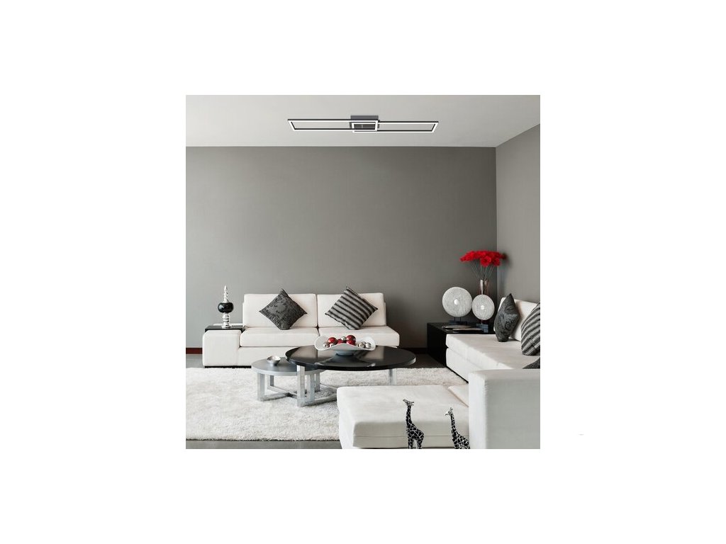 Stropní svítidlo Nefertum postavené z hranatých prvků je se svým čistým designem a všestranností perfektní volbou do nejmodernějšího obývacího pokoje. Černý model vyrobený z kovu a plastu je doplněn bílým plastovým krytem a na čtvercový ozdobný podstavec jsou připevněny dva pravoúhlé prvky svítidla přesahující do stran. Nefertum má zabudovaný LED světelný zdroj energetické třídy G, s výkonem 38 W, svítivostí 3150 lumenů se stínítkem, 4400 lumenů bez stínítka a životností 25 000 hodin. Barevnou teplotu svítidla lze měnit v rozmezí 3000-6500 K, také je stmívatelné, tzn. dá se regulovat jas, má i funkce paměti, časovače a nočního svícení. Doplňkové funkce lze ovládat pomocí dálkového ovladače nebo aplikace v telefonu – svítilnu lze ovládat přes Wi-Fi. Cooperius je vybaven také baterií s napětím 1,5 V a kapacitou 400 mAh. Šířka svítidla je 1020 mm, výška 200 mm a vzdálenost od stropu 65 mm.