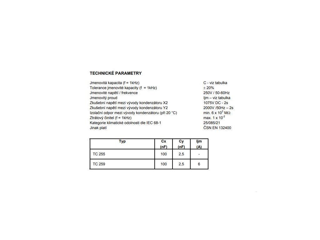 Odrušovací filtr TC255 100n+2x2n5 250VAC/6A - 3 vývodyDoplňkové parametry