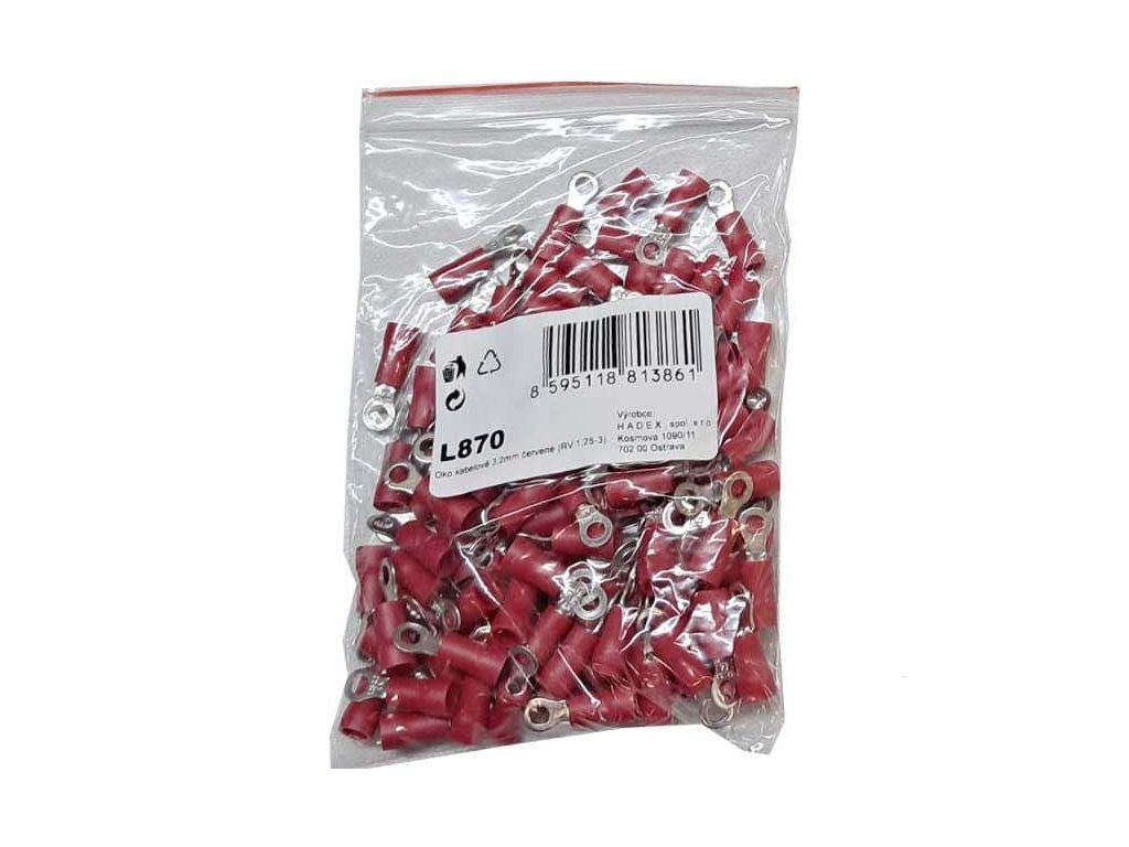 Oko kabelové 3,2mm červené (RV 1,25-3), balení 100ksDoplňkové parametry