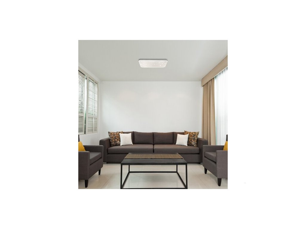 Stropní svítidlo Oscar s hvězdným efektem bude dokonalým doplňkem k zařízení každého moderního obývacího pokoje, ložnice nebo pracovny. Díky jasnému designu a bílé barvě téměř nepostřehnutelně splývá s barvou světla stropu. Čtvercové svítidlo se zaoblenými rohy je vyrobeno z kovu v chromové barvě a je doplněno bílým akrylovým stínidlem. Svítidlo Oscar vyzařující přirozené bílé světlo obsahuje energeticky úsporný zabudovaný LED světelný zdroj s výkonem 36 W, světelným tokem 2 520 lumenů a barevnou teplotou 4 000 K. Životnost inteligentní žárovky je celkem působivá: 50 000 hodin! Rozměry tohoto stropního svítidla ve tvaru kvádru jsou následující: jeho delší strana měří 635 mm, kratší strana 330 mm a vzdálenost svítidla od stropu je pouze 60 mm. Na vynikající stropní svítidlo Oscar nabízíme 5letou záruku.