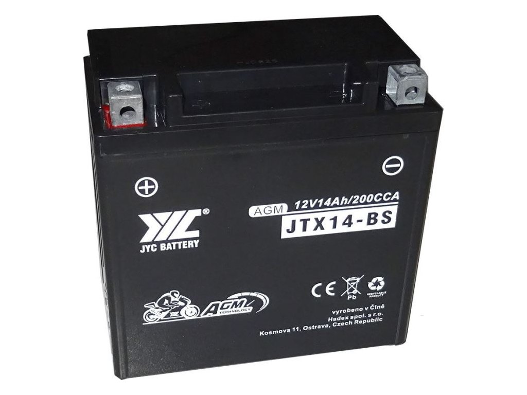 Pb akumulátor JYC JTX14-BS AGM pro motocykly 12V/14Ah levý