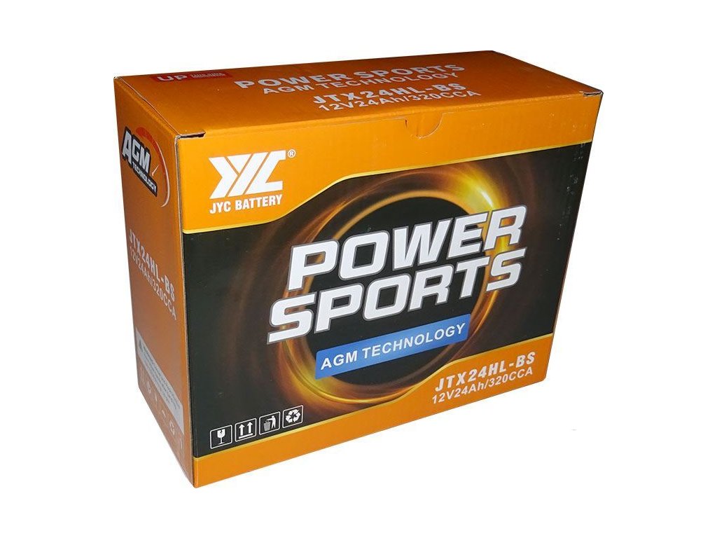 Pb akumulátor JYC JTX24HL-BS AGM pro motocykly 12V/24Ah pravý