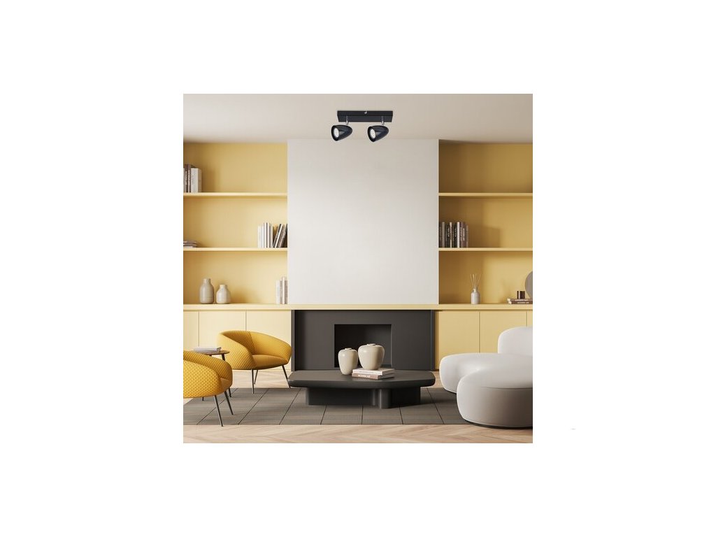 Moderní stropní svítidlo Perico se dvěma světly se doporučuje do obývacích pokojů, ložnic nebo pracoven. Černé kovové svítidlo je doplněno lesklými černými plastovými stínítky a lze jej připevnit ke stropu pomocí obdélníkového ozdobného podstavce. Díky pohyblivé hlavě lampy můžete světlo nasměrovat podle svých představ v pokoji. Lampu Perico lze používat se dvěma světelnými zdroji každý s maximálním příkonem do 5 W, typ patice GU10. V závislosti na vašem vkusu a místě instalace si můžete vybrat zdroje teplého nebo přirozeného bílého světla. Chcete-li tuto lampu používat v ložnici, doporučujeme použít zdroj teplého bílého světla, který pomůže vytvořit útulnou domácí atmosféru. Rozměry dvojitého stropního svítidla Perico jsou tyto: šířka 260 mm, průměr každého stínítka 70 mm, vzdálenost od stropu 150 mm. Tento model se dodává bez světelných zdrojů.