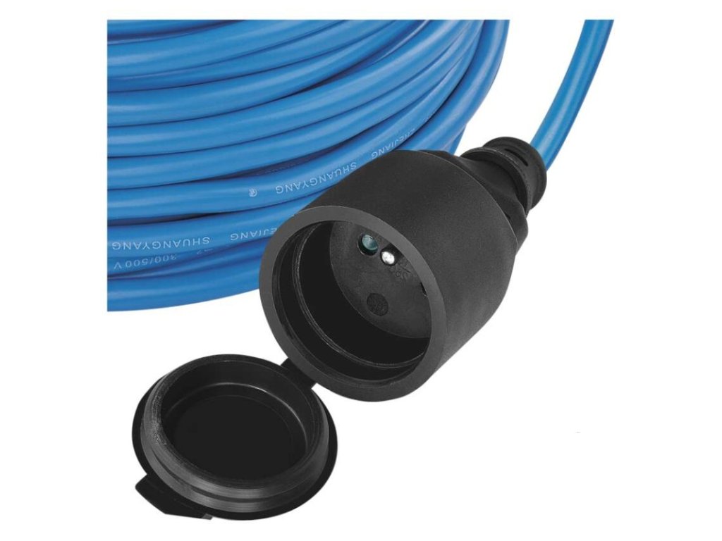 Počasí odolný prodlužovací kabel 10 m / 1 zásuvka / modrý / PVC / 230 V / 1,5 mm2