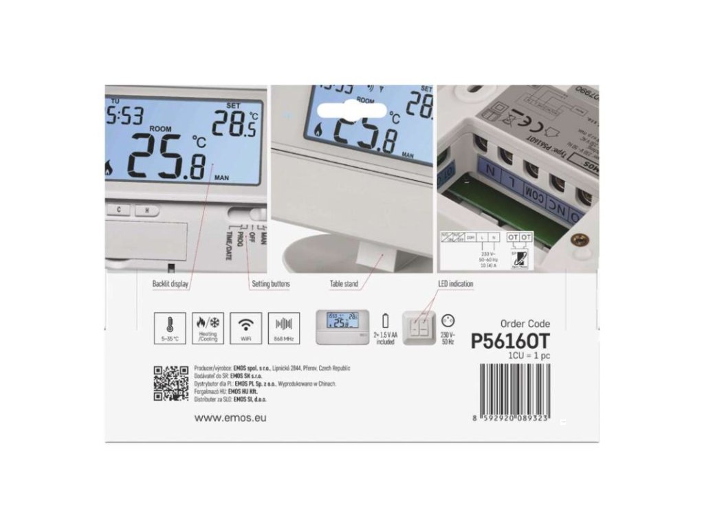 | typ ovládání: | programovatelný elektronický pokojový termostat |