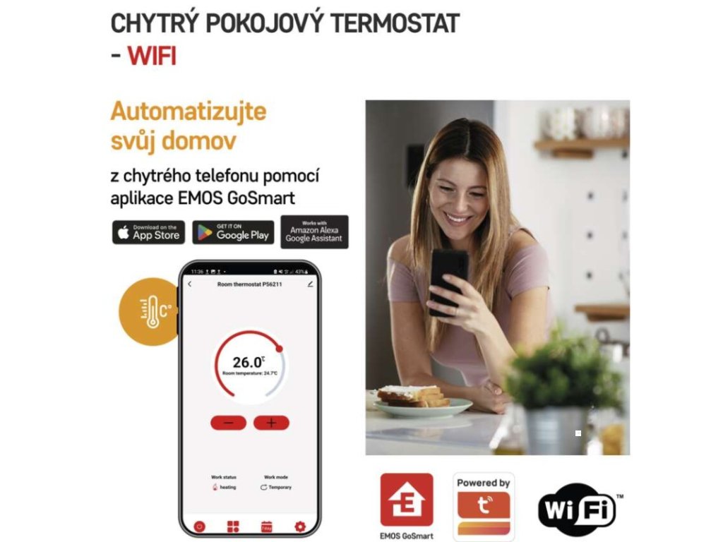 Pokojový programovatelný bezdrátový WiFi GoSmart termostat P56211