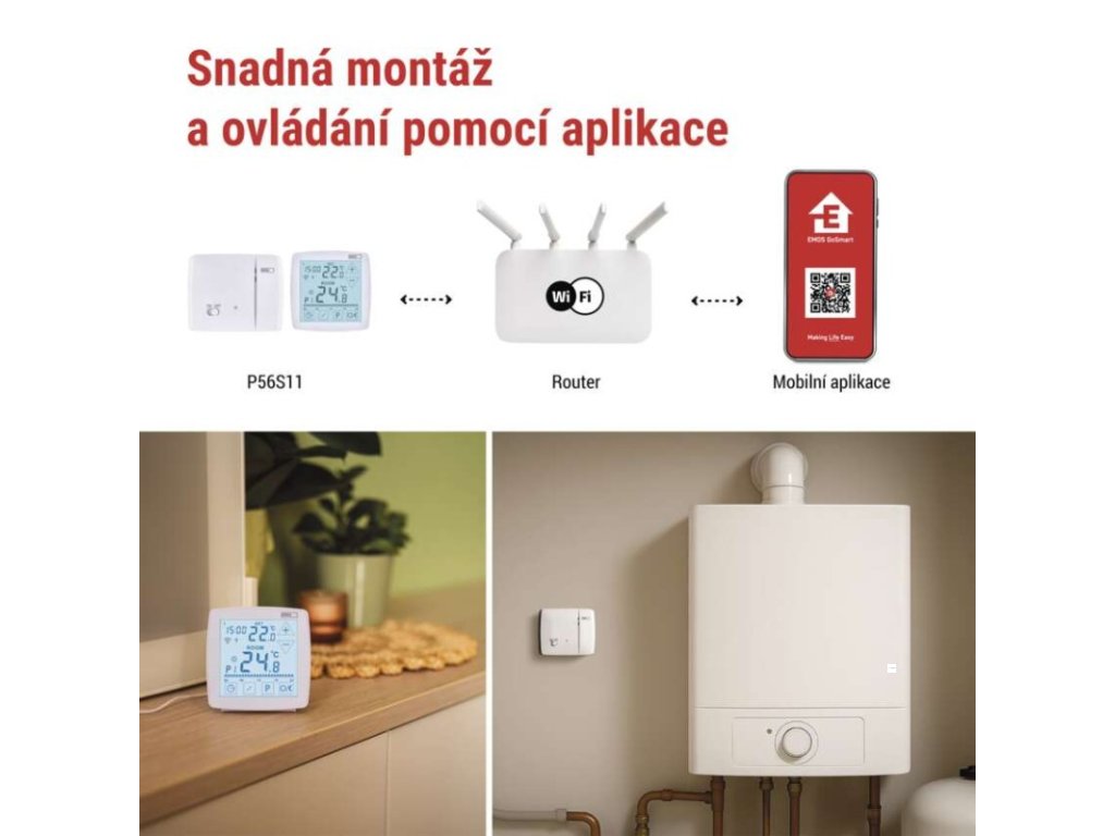 Pokojový programovatelný bezdrátový WiFi GoSmart termostat P56S11