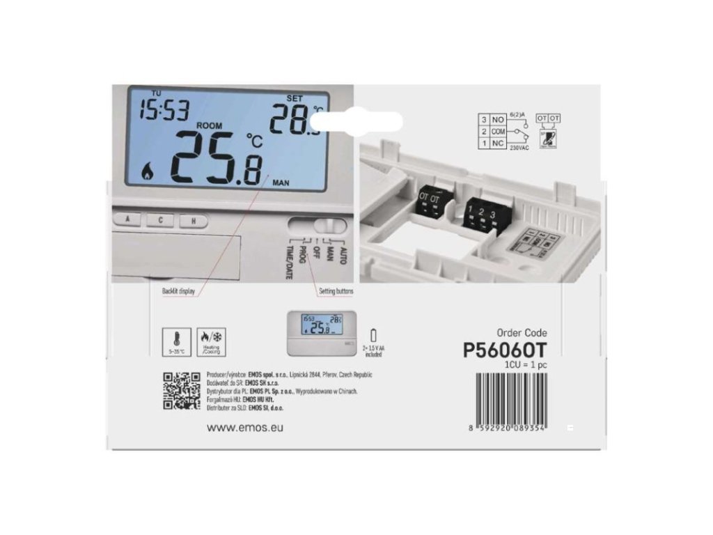 | typ ovládání: | programovatelný elektronický pokojový termostat |