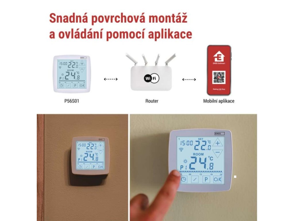 Pokojový programovatelný drátový WiFi GoSmart termostat P56S01