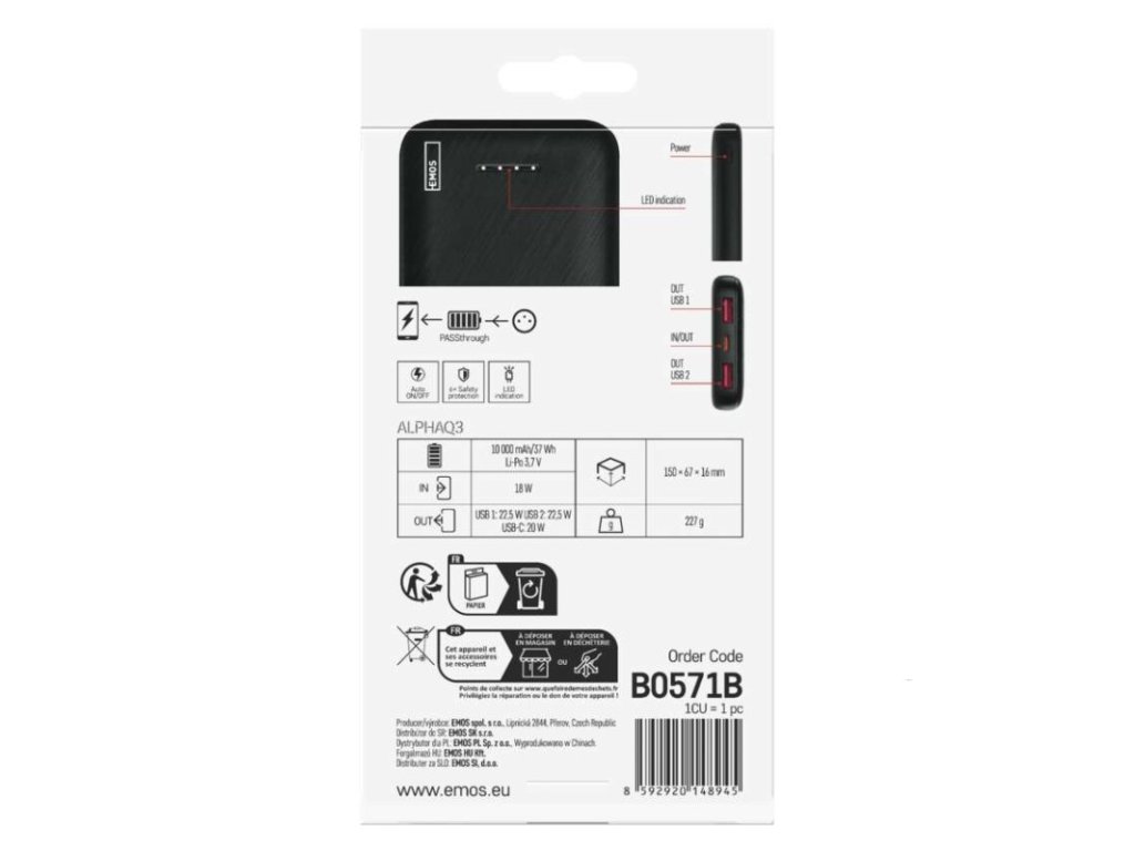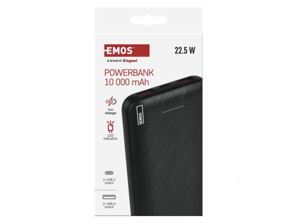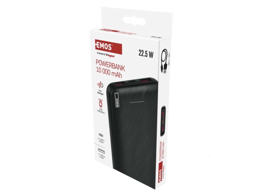 Powerbanka EMOS AlphaQ3, 10 000 mAh, 22,5 W, černá