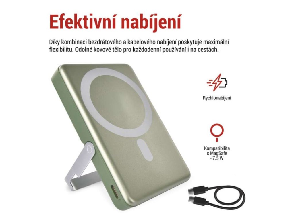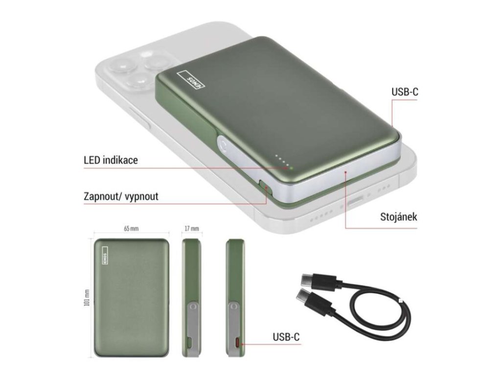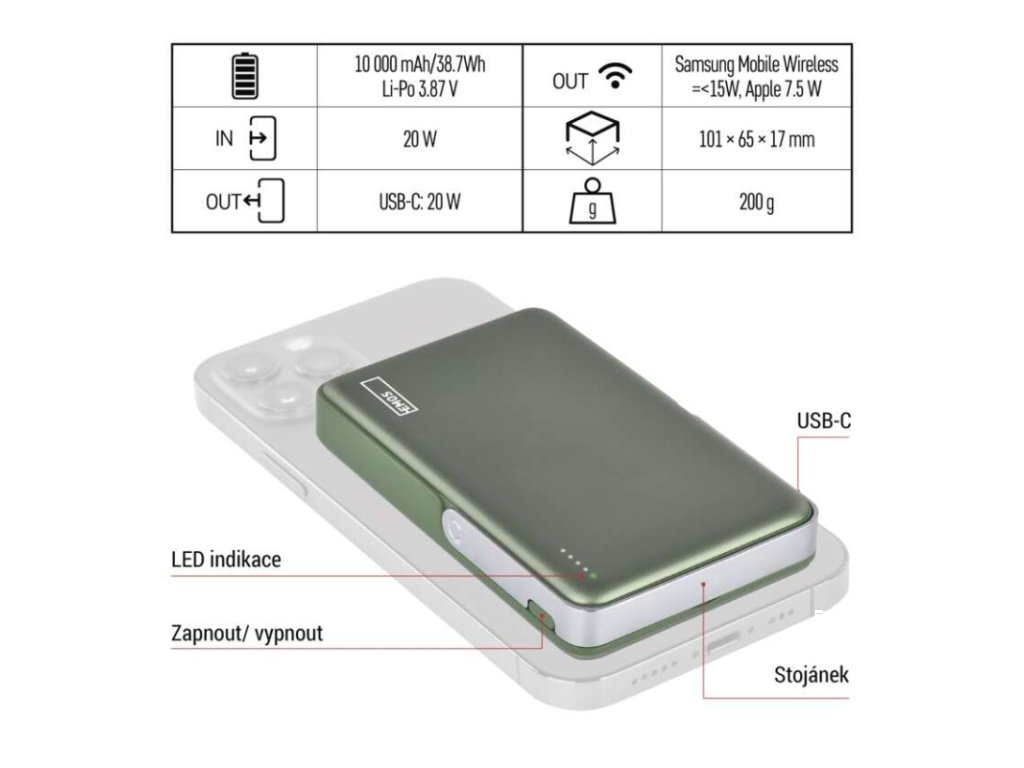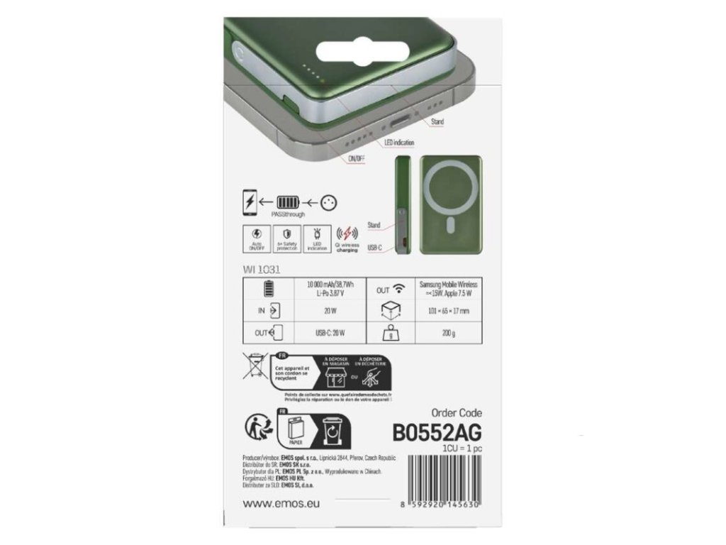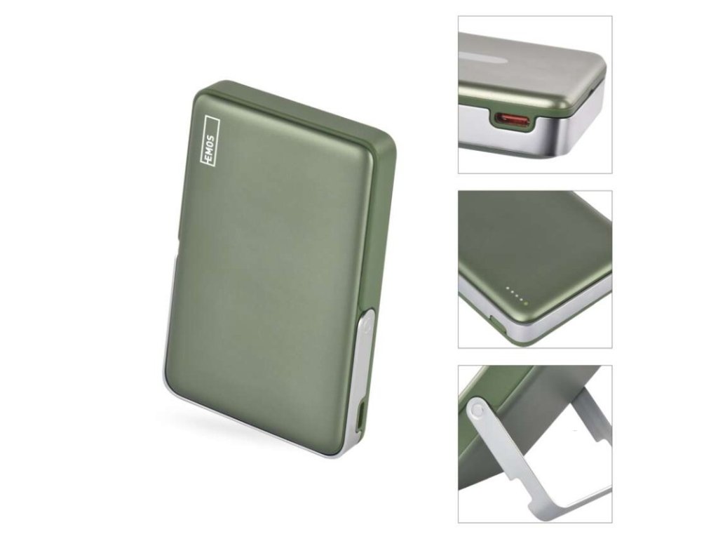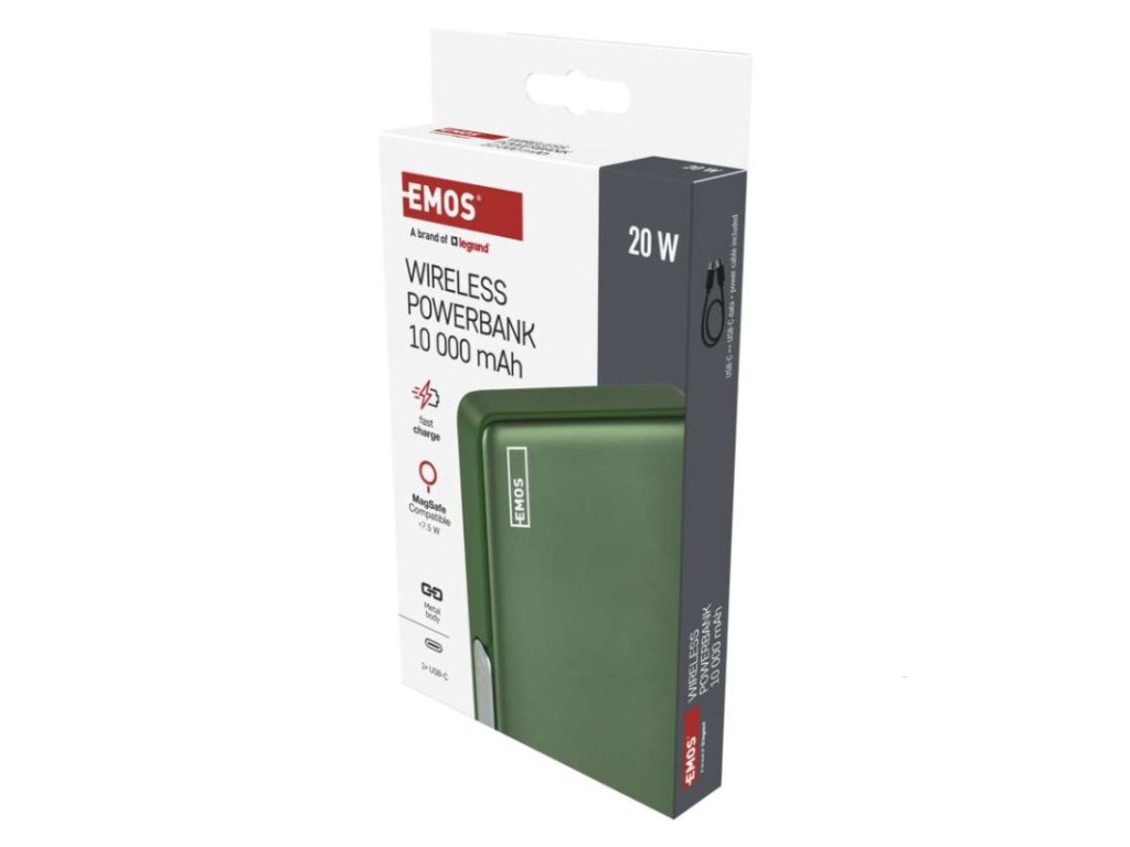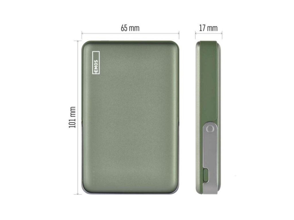 Powerbanka EMOS WI 1031, 10 000 mAh, 20 W+Wireless, army-green