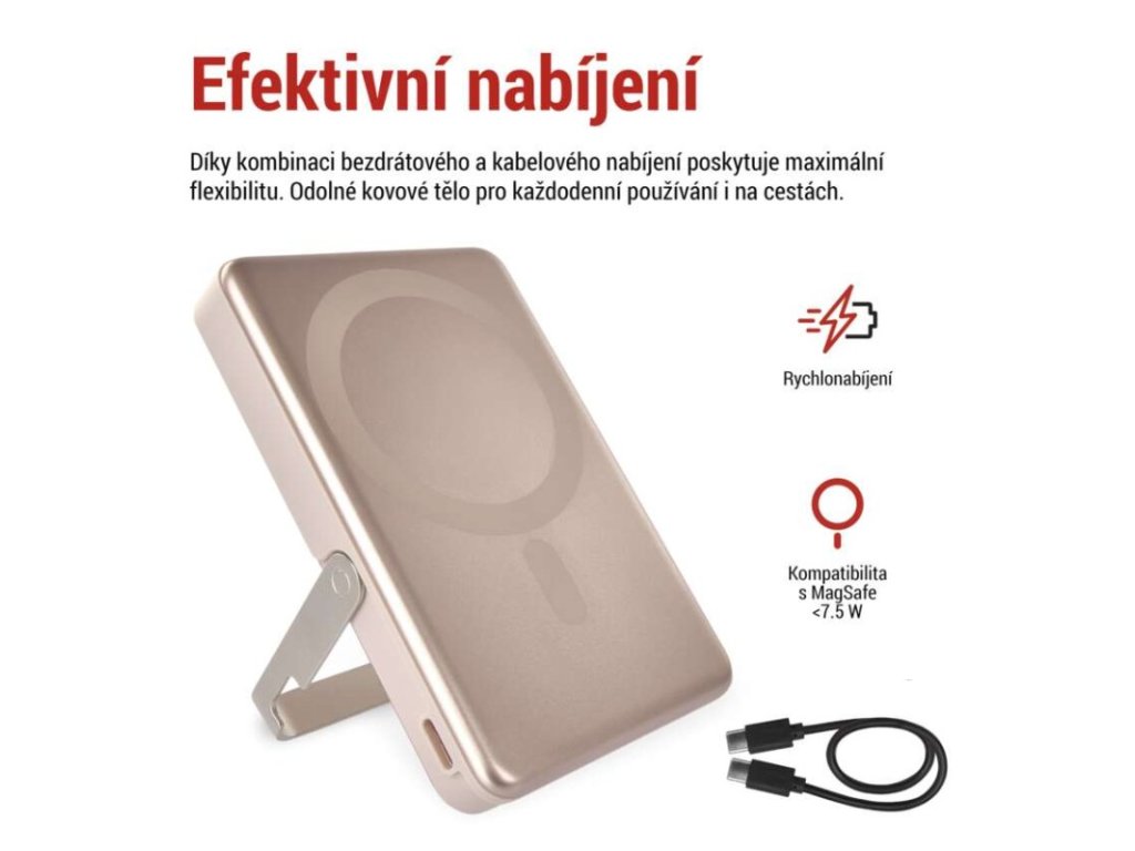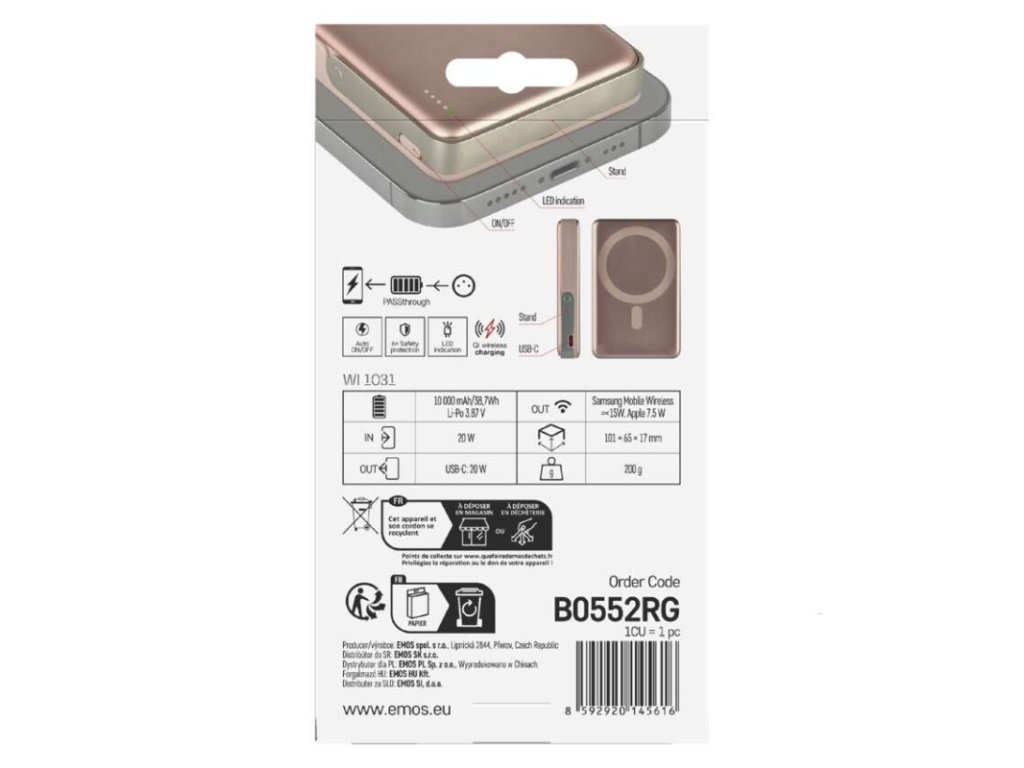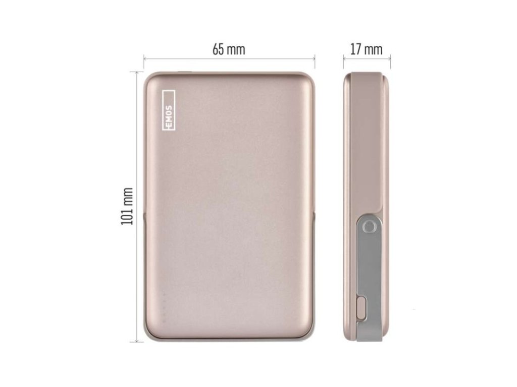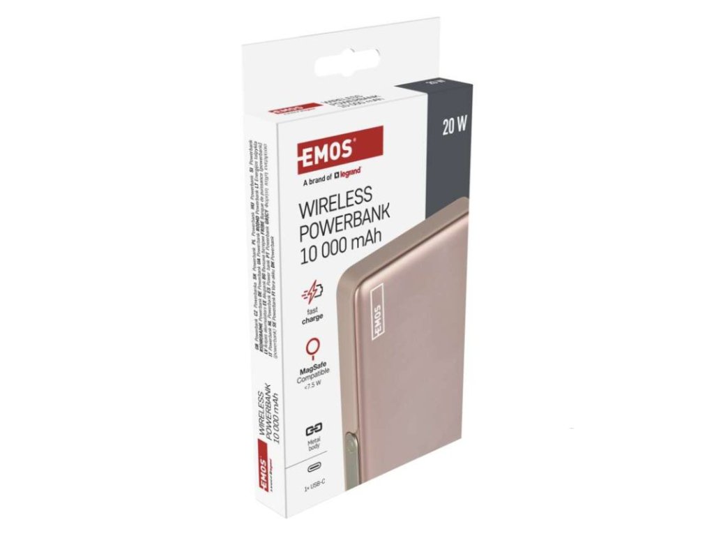 Powerbanka EMOS WI 1031, 10 000 mAh, 20 W + wireless, růžovo-zlatá
