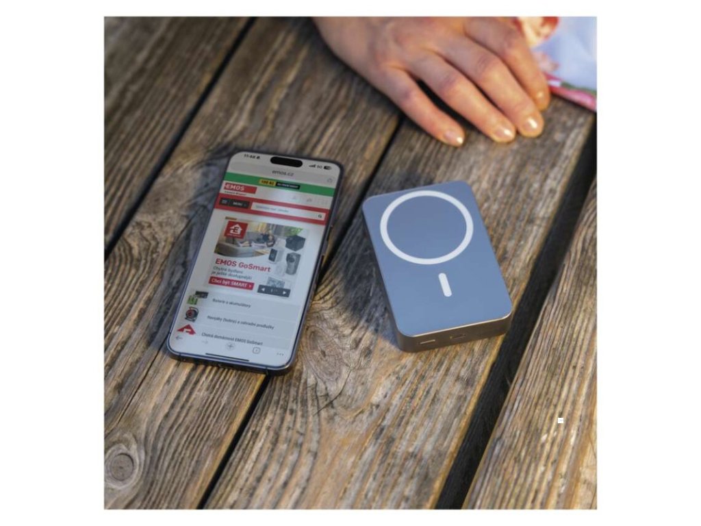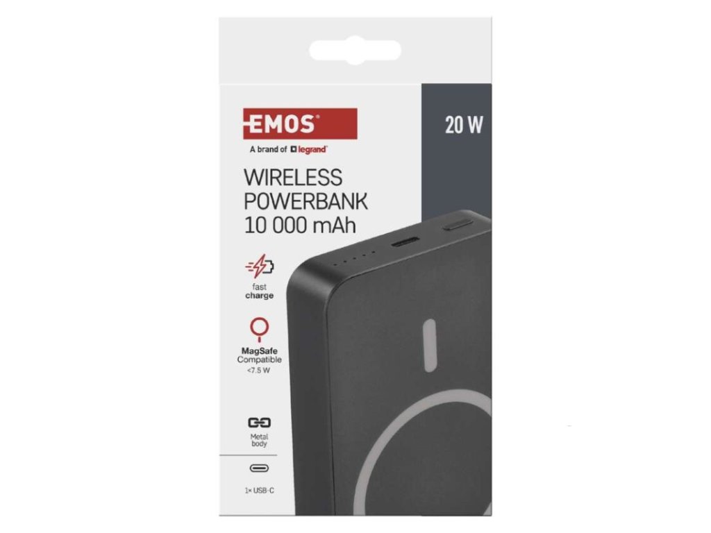 Powerbanka EMOS WI 1046, 10 000 mAh, 20 W+Wireless, šedá