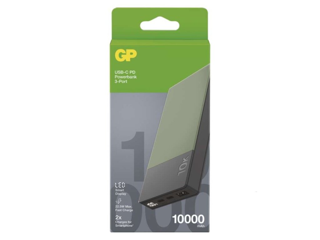 auto ON/OFF: neuvádí se|barva: zelená|doba nabíjení: 3,5 hodiny|hmotnost: 260 g|kapacita akumulátoru: 10 000 mAh/37 Wh|LED indikátor nabíjení: ano|LED indikátor stavu baterie: ano|materiál: ABS plast|max. vstupní výkon: 18 W|max. výkon drátového nabíjení: 22,5 W|ochrana proti podbití: ano|ochrana proti přebití: ano|ochrana proti přetížení: ano|ochrana proti zkratu: ano|passthrough: ano|přibalený kabel: USB-A/USB-C|prodejní obal: 1 ks, papírová krabička|provozní teplota: 0 °C až +45 °C|rozměr: 142 × 67 × 16 mm|rychlé nabíjení: PD 22,5 W|typ akumulátoru: Li-Po 3,7 V|typ vstupního rozhraní: 1× USB-C|typ výstupního rozhraní: 2× USB-C, 1× USB-A|záruční doba: 2 rokyDoplňkové parametry