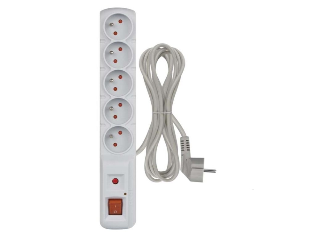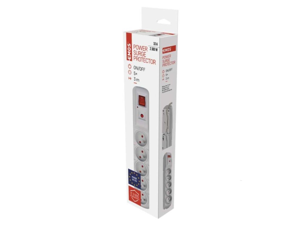 Přepěťová ochrana – 5 zásuvek, 3m, šedá