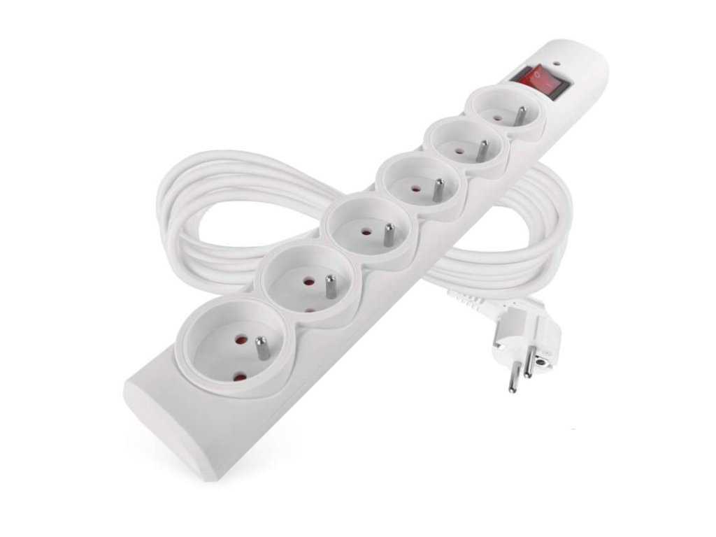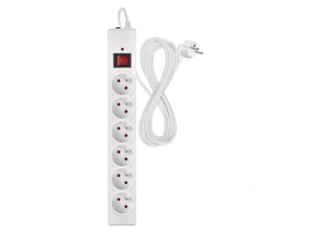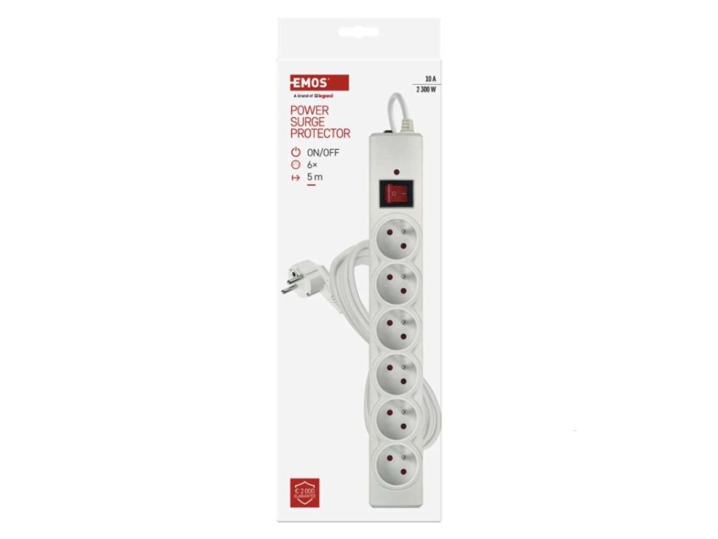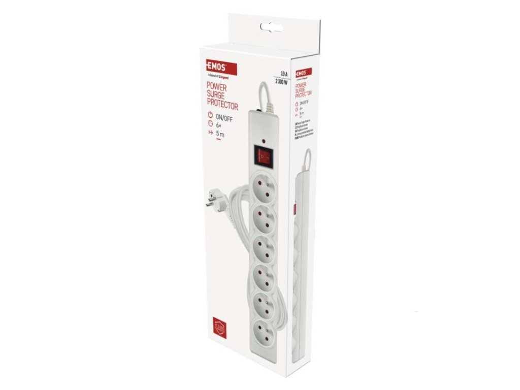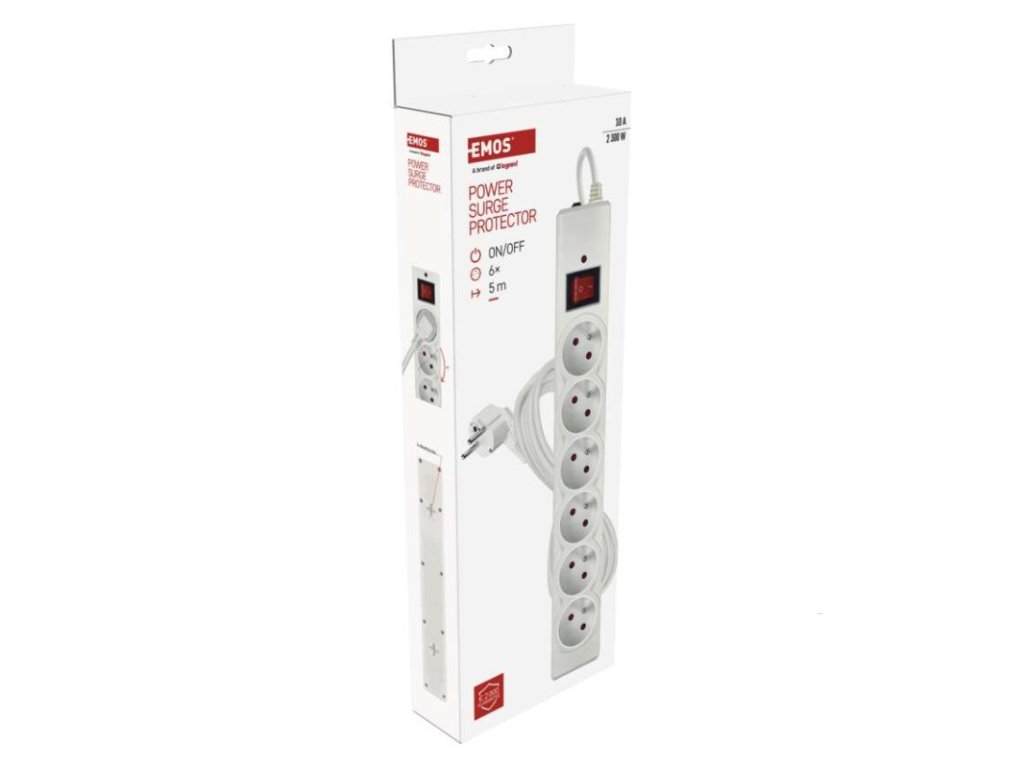 Přepěťová ochrana – 6 zásuvek, 5 m, bílá