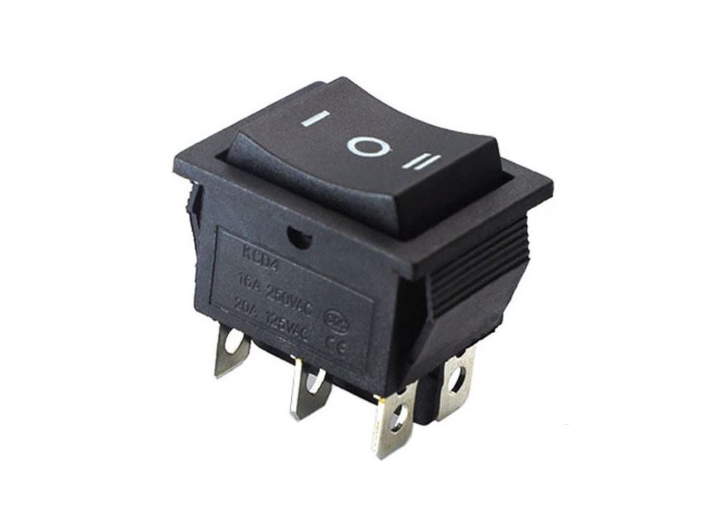 Přepínač kolébkový KCD4, ON-OFF-ON 2p.250V/16 I-O-II