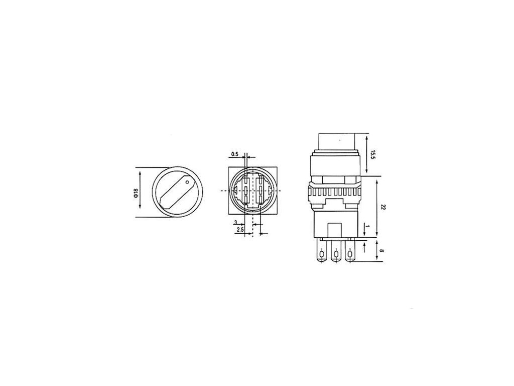 Přepínač otočný A16-22ZX2, ON-ON 2pólový, 250V/3ADoplňkové parametry