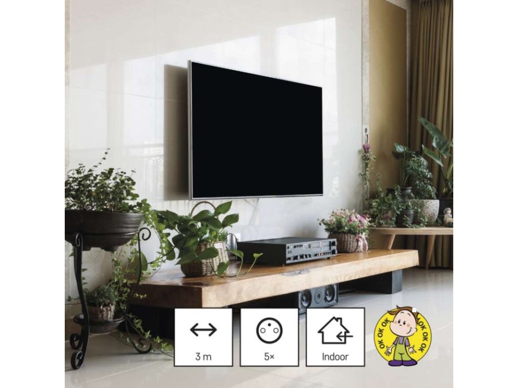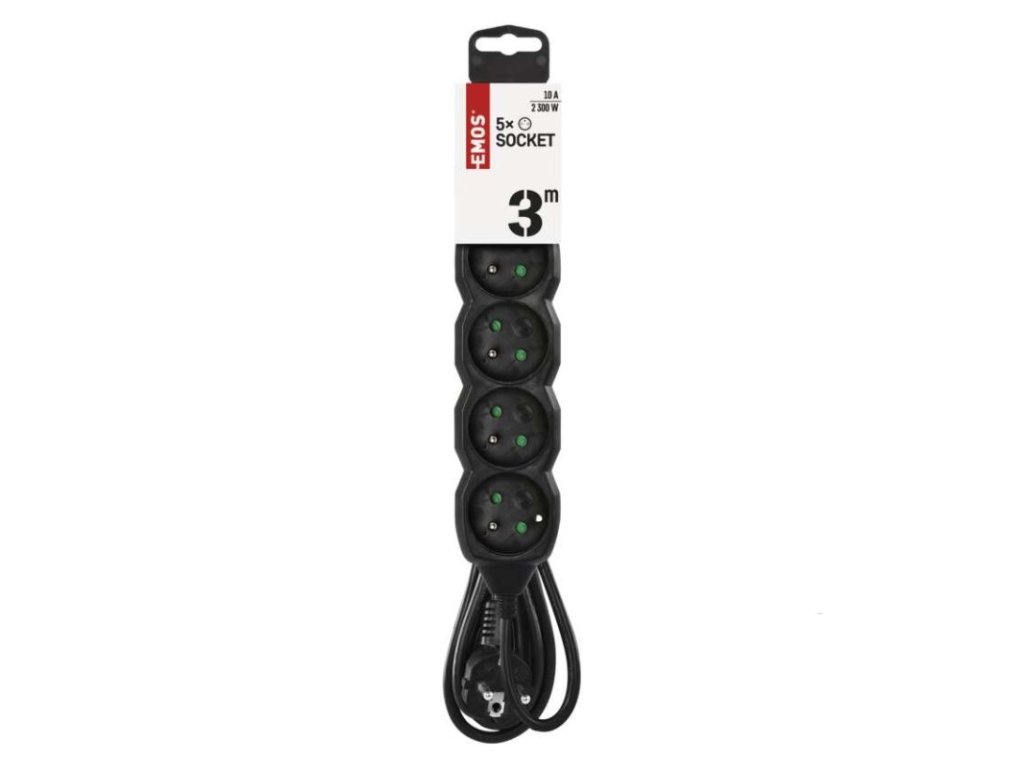 barva: černá|délka: 3 m|dětské clonky: ano|krytí: IP20|materiál zásuvky a vidlice: plast|max. zátěž: 2 300 W|napětí: 250 V~|počet zásuvek: 5|prodejní obal: 1 ks, závěs|proud: 10 A max.|průřez vodiče: 1,0 mm²|typ izolace: PVC|USB výstup: ne|vodič: H05VV-F3G|vypínač: neDoplňkové parametry