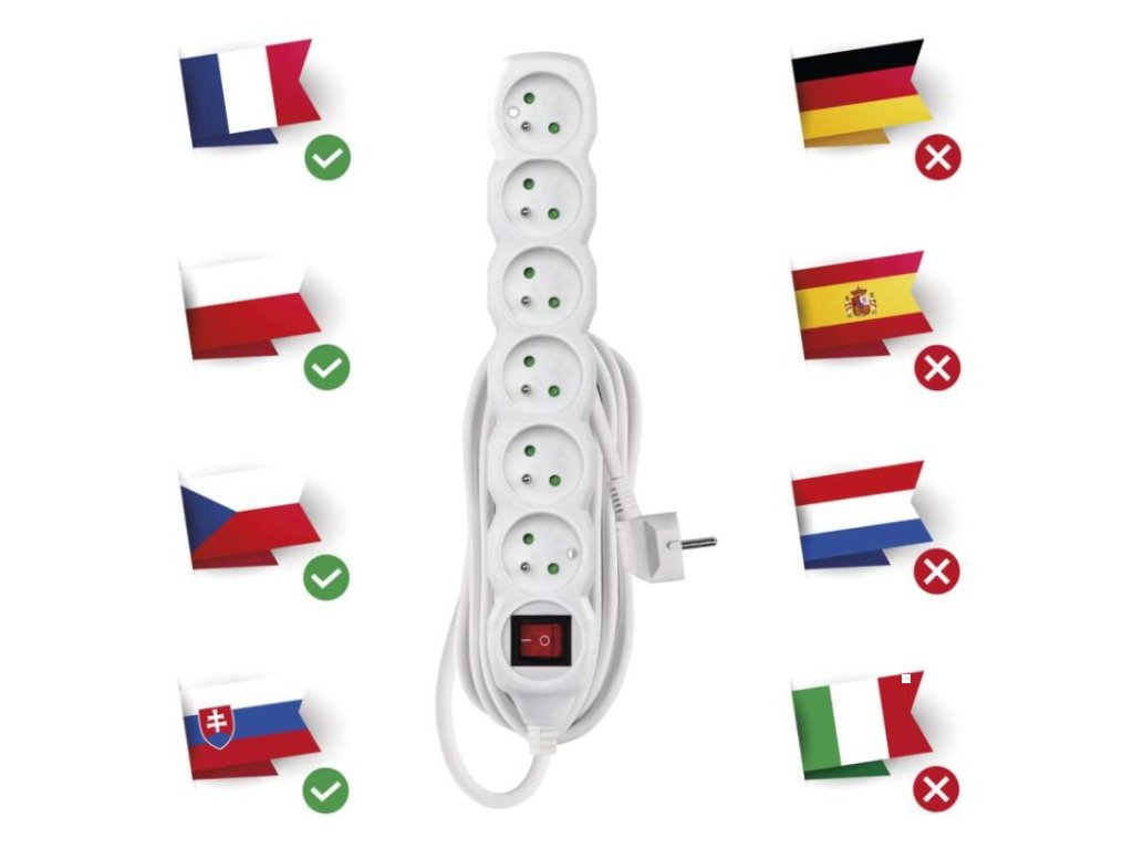 barva: bílá|délka: 5 m|dětské clonky: ano|krytí: IP20|materiál zásuvky a vidlice: plast|max. zátěž: 3 680 W|napětí: 250 V~|počet zásuvek: 6|prodejní obal: 1 ks, závěs|proud: 16 A max.|průřez vodiče: 1,5 mm²|typ izolace: PVC|USB výstup: ne|vodič: H05VV-F3G|vypínač: anoDoplňkové parametry