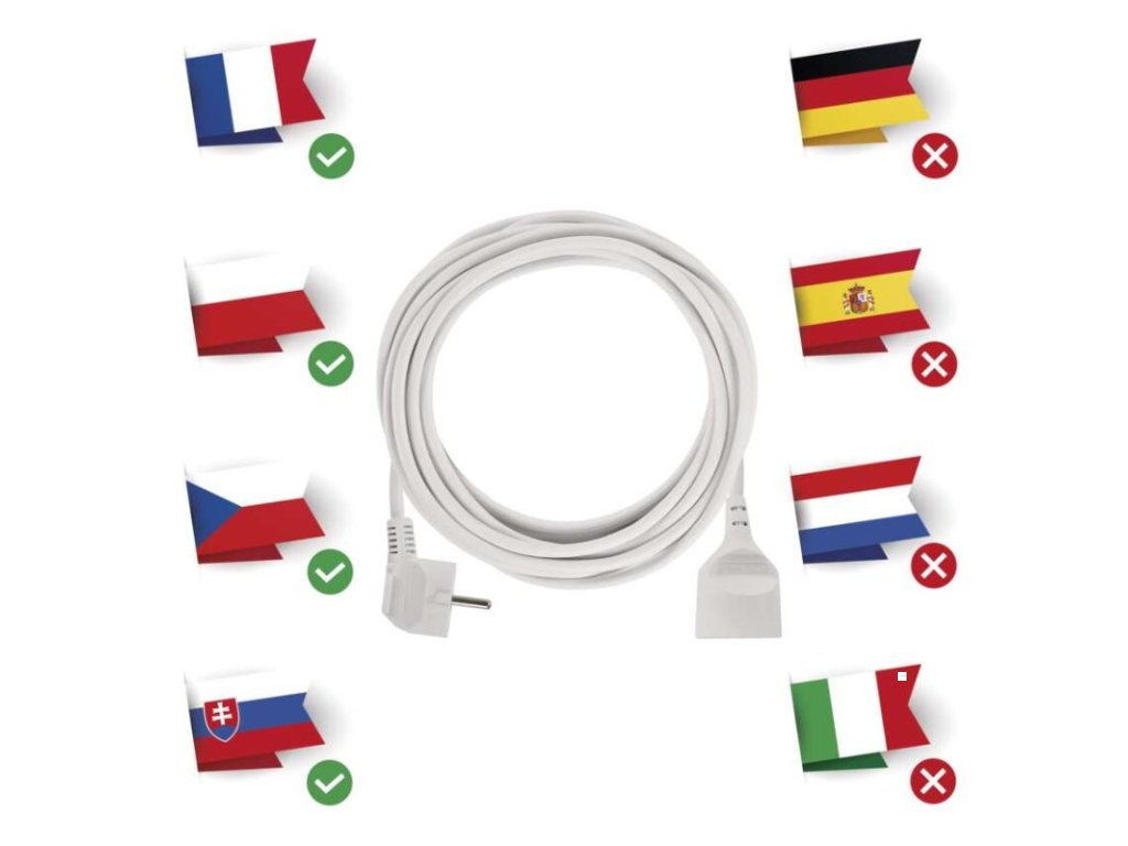 barva: bílá|délka: 7 m|dětské clonky: ano|krytí: IP20|materiál zásuvky a vidlice: plast|max. zátěž: 2 300 W|napětí: 250 V~|počet zásuvek: 1|prodejní obal: 1 ks, závěs|proud: 10 A max.|průřez vodiče: 1,0 mm²|typ izolace: PVC|USB výstup: ne|vodič: H05VV-F3G|vypínač: neDoplňkové parametry