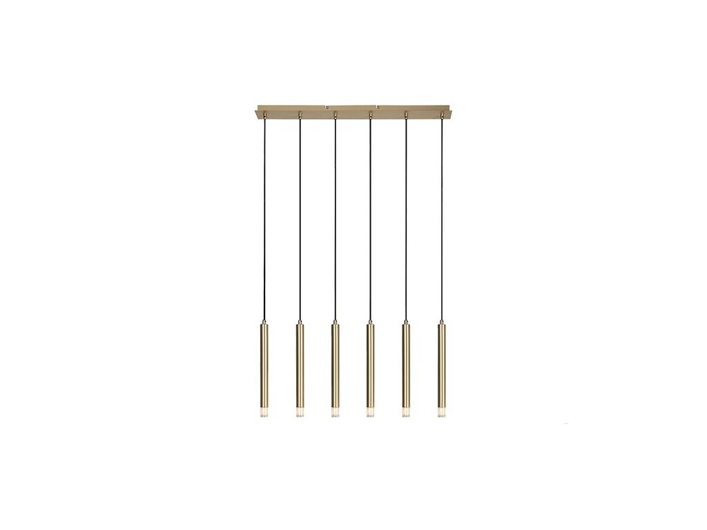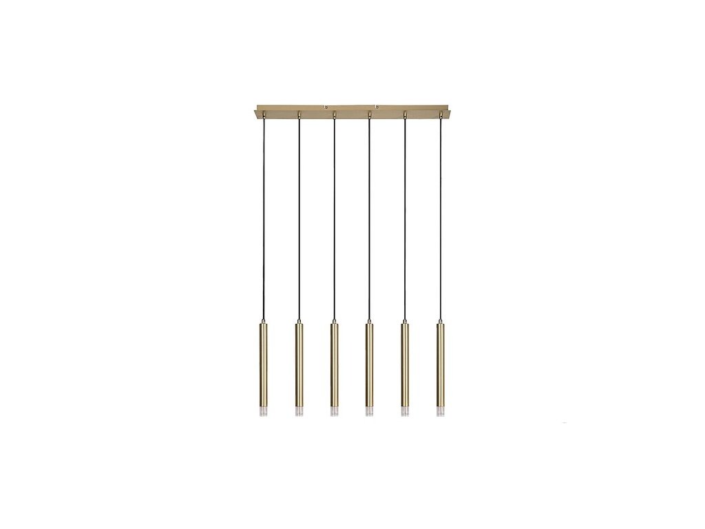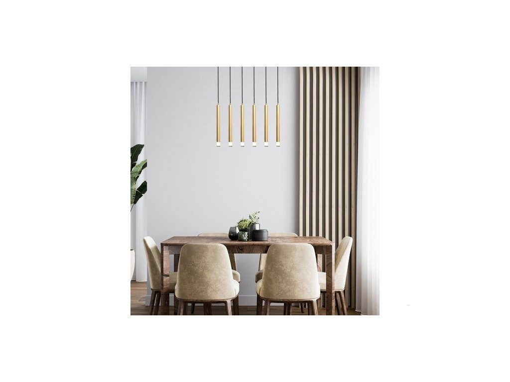 Závěsné svítidlo Rabalux Ramira s šesti žárovkami je ideální volbou pro ty, kteří hledají moderní, minimalistické závěsné svítidlo, které lze snadno integrovat do téměř jakékoli místnosti v domácnosti. Svítidlo je vyrobeno z kovu v elegantní zlaté barvě a doplněno průhlednými akrylovými stínidly a dlouhou čtvercovou dekorativní základnou ve stejné barvě jako světelné prvky. Světelné prvky mají malý průměr, trubicovitý, válcový tvar a jsou uspořádány vedle sebe v jedné řadě. Tento univerzální model je doporučen nejen do obývacího pokoje, kuchyně a jídelny, ale také do ložnice. Závěsné svítidlo lze použít se šesti žárovkami, každou o výkonu až 5 W. Typ objímky je G9. Lze si vybrat světelné zdroje vyzařující teplé nebo přirozené bílé světlo. Závěsné svítidlo se dodává bez světelných zdrojů.