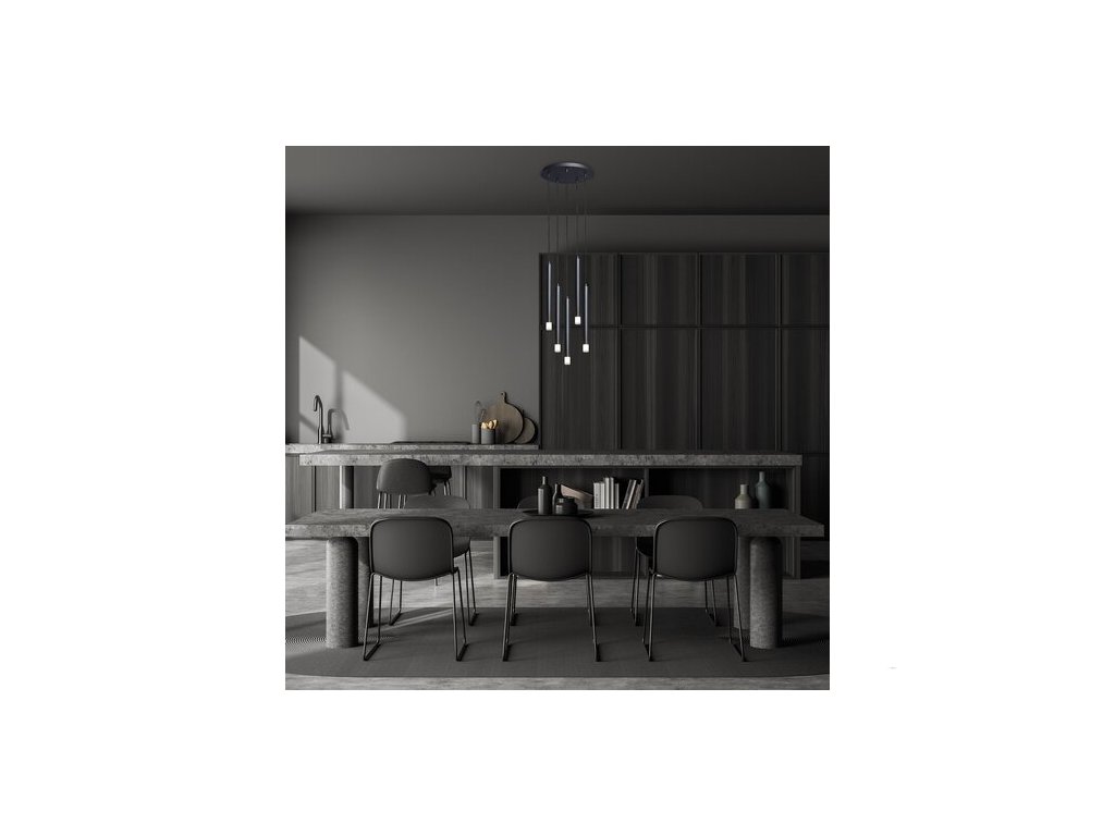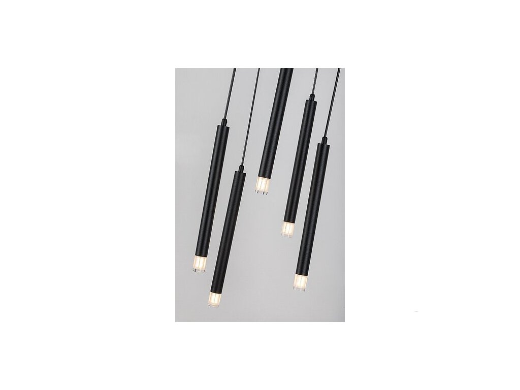Závěsné svítidlo Rabalux Ramira s pěti žárovkami je doporučeno těm, kteří hledají minimalistické závěsné svítidlo, které lze integrovat do téměř jakékoli místnosti moderního domova. Svítidlo je vyrobeno z kovu v černé barvě s průhlednými akrylovými stínidly a velkou kulatou dekorativní základnou. Světelné prvky mají trubicovitý, válcový tvar a jsou zavěšeny v různých výškách, což dodává svítidlu dynamický vzhled. Tento model je ideální volbou do obývacího pokoje, kuchyně, jídelny nebo ložnice. Můžete jej umístit nad jídelní stůl nebo nad postel. Závěsné svítidlo lze použít s pěti žárovkami, každou o výkonu až 5 W. Typ objímky je G9. Lze si vybrat světelné zdroje vyzařující teplé nebo přirozené bílé světlo. Svítidlo se dodává bez světelných zdrojů.