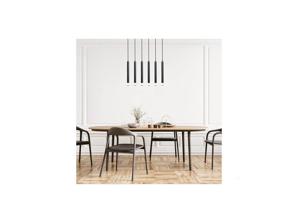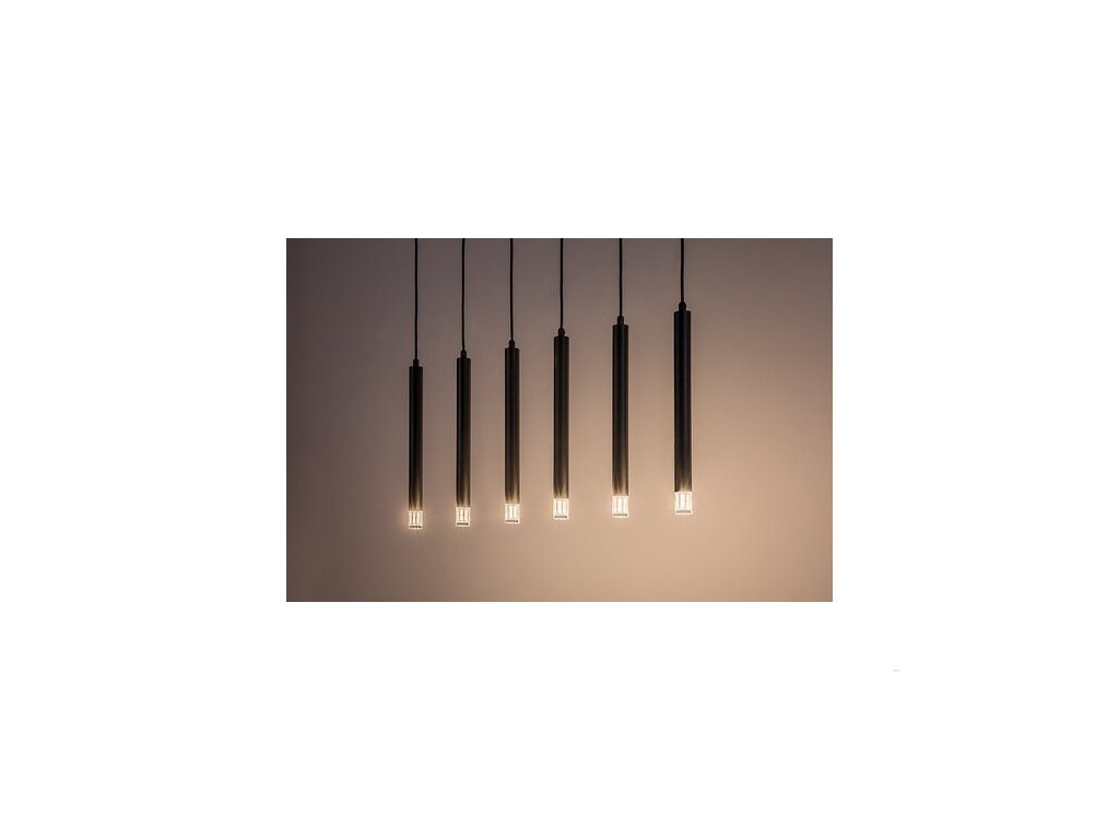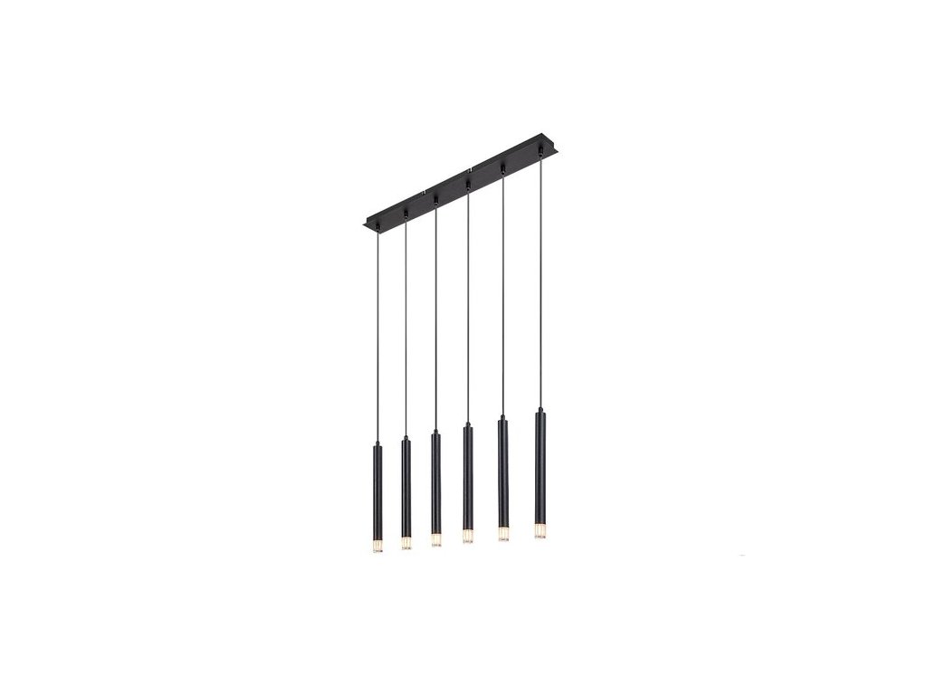 Závěsné svítidlo Rabalux Ramira s šesti žárovkami je ideální volbou pro ty, kteří hledají moderní, minimalistické závěsné svítidlo, které lze snadno integrovat do téměř jakékoli místnosti v domácnosti. Svítidlo je vyrobeno z kovu v černé barvě a doplněno průhlednými akrylovými stínidly a dlouhou čtvercovou dekorativní základnou. Světelné prvky mají malý průměr, trubicovitý, válcový tvar a jsou uspořádány vedle sebe v jedné řadě. Tento univerzální model je doporučen nejen do obývacího pokoje, kuchyně a jídelny, ale také do ložnice. Závěsné svítidlo lze použít se šesti žárovkami, každou o výkonu až 5 W. Typ objímky je G9. V závislosti na místnosti, kam chcete svítidlo instalovat, si můžete vybrat žárovky vyzařující teplé nebo přirozené bílé světlo. Závěsné svítidlo se dodává bez světelných zdrojů.