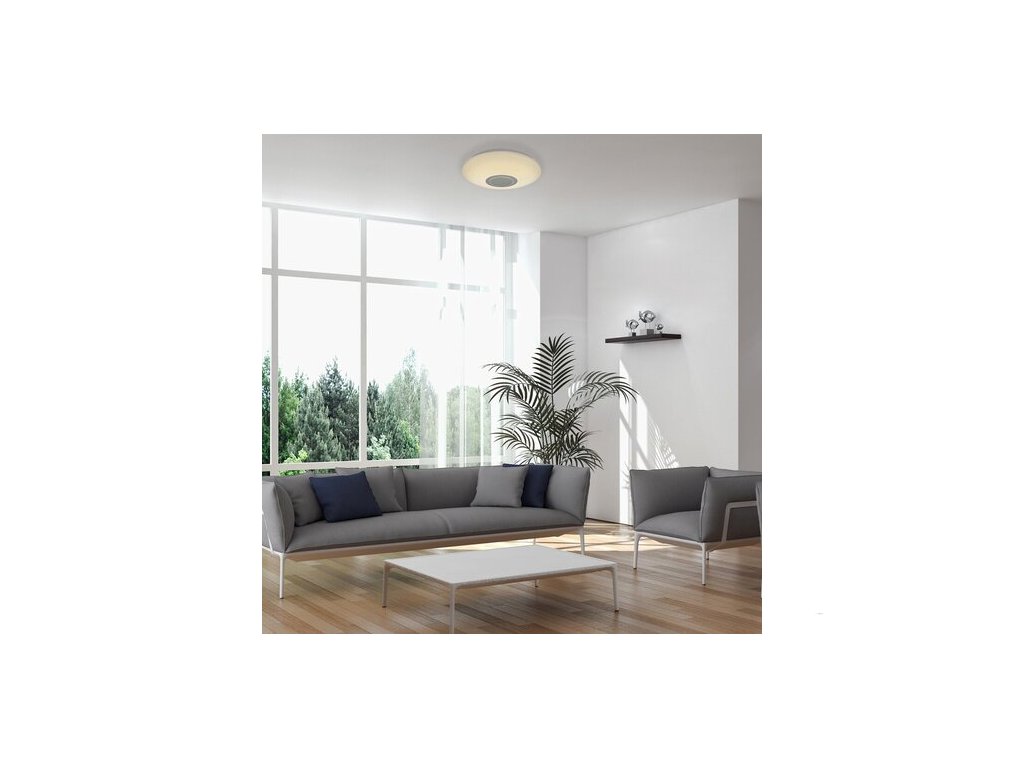 Stropní svítidlo Rodion vyrobeno z kovu a akrylu si díky mnoha extra funkcím oblíbí všichni členové rodiny. Primárně doporučujeme tento velký, kulatý model s třpytivým efektem, použít ve svém obývacím pokoji nebo ložnici. Spotřeba energie vestavěného světelného zdroje je 24 W, jeho svítivost je 1800 lumenů a životnost je 30000 hodin. Barevnou teplotu inteligentního svítidla je možné podle potřeby nastavit v rozmezí 2700 až 6500 K. To znamená, že může danou místnost osvětlit teplým, přirozeným nebo studeným bílým světlem. Kromě toho je možné nastavit i okolní osvětlení RGB. Je tu ještě mnoho doplňků, které si můžete vychutnat: Rodion lze ztlumit pomocí dálkového ovladače, což znamená, že je možné upravit jeho jas a obsahuje také noční funkci. Stropní svítidlo vybaveno funkcí časovače a Bluetooth reproduktorům je možné ovládat přes Wi-Fi připojení. Vzdálenost svítidla s průměrem 400 mm od stropu je 90 mm.