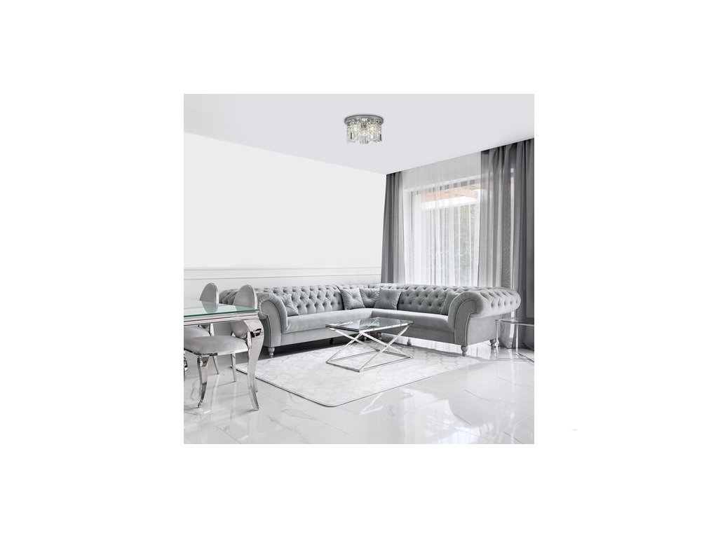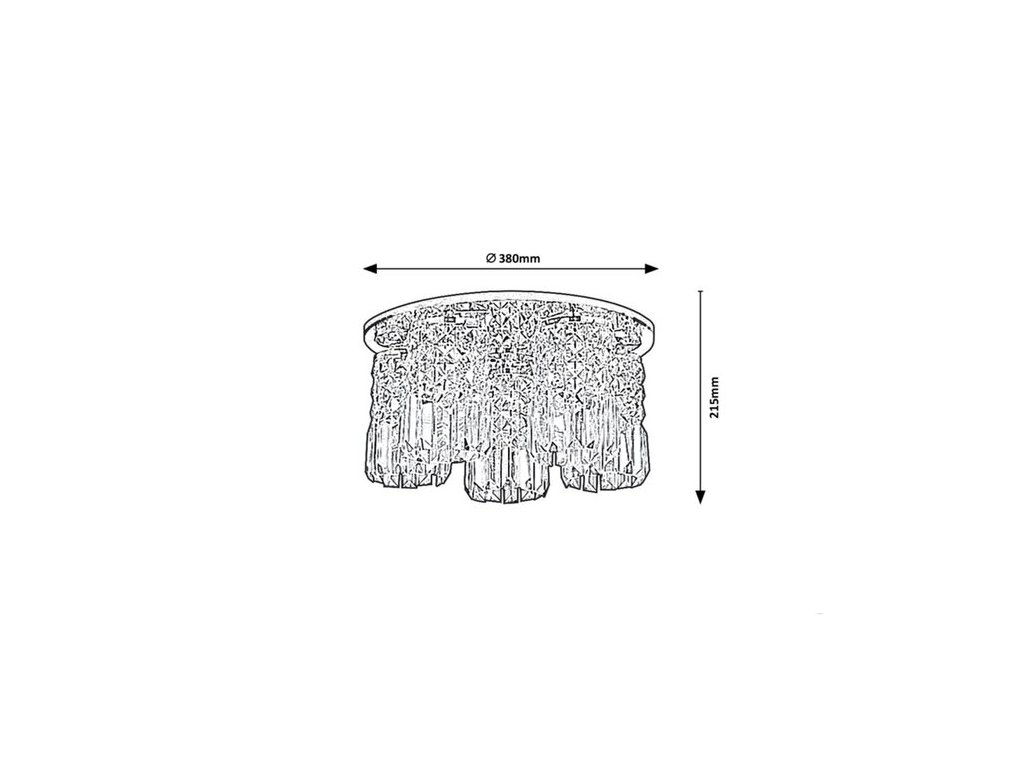 Stropní svítidlo Rosanna, které představuje klasický styl, bude elegantním a velkolepým doplňkem k zařízení osvětlení bytu v klasickém stylu. Kovové svítidlo v chromové barvě je doplněno stínítkem z průhledného skleněného křišťálu. Svítidlo lze připevnit na strop pomocí velkého kulatého ozdobného podstavce. Díky svému jasnému světlu a elegantnímu vzhledu vytváří svítidlo Rosanna úžasnou atmosféru. Toto stropní svítidlo je možné použít s pěti žárovkami, z nichž každá má výkon až 40W. Typ zásuvky je G9. Pokud chcete vylepšit intimní a útulnou atmosféru, vyberte si pro toto svítidlo teplé bílé světelné zdroje. Průměr tohoto svítidla je 380 mm, vzdálenost od stropu je 215 mm. Tento model se dodává bez světelných zdrojů.