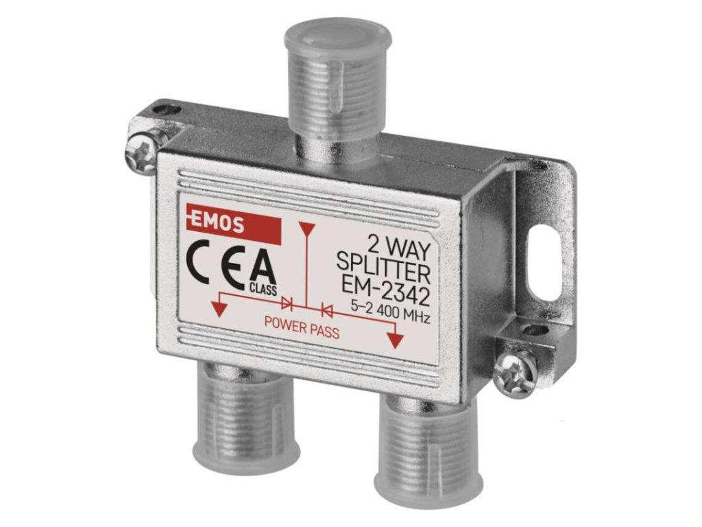 frekvenční rozsah: 5–2 400 MHz|krytí: IP20|materiál těla rozbočovače: zinkový odlitek|počet vstupů: 1|počet výstupů: 2|použití: TV + R|pracovní teplota: -10–+65 °C|prodejní obal: 1 ks, krabice|provedení: feritový|průchozí pro stejnosměrné napětí (power pass): ano, 2×|průchozí útlum: 3,7 dB|rozměr: 25 × 35 × 20 mm|tlumení odrazu na vstupu: neuvádí se|typ konektorů: F|zvlnění v pásmu: neuvádí seDoplňkové parametry