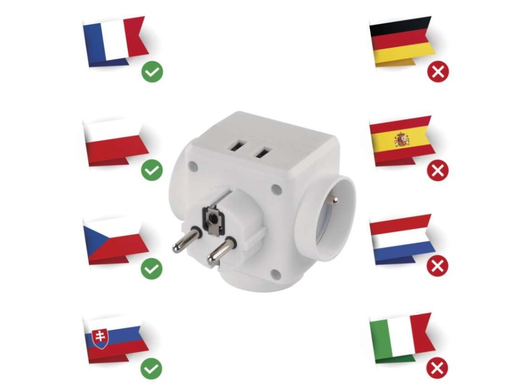 | produkt: | rozbočovací zásuvka 3×+ 2× USB ∑2,4 A max. |