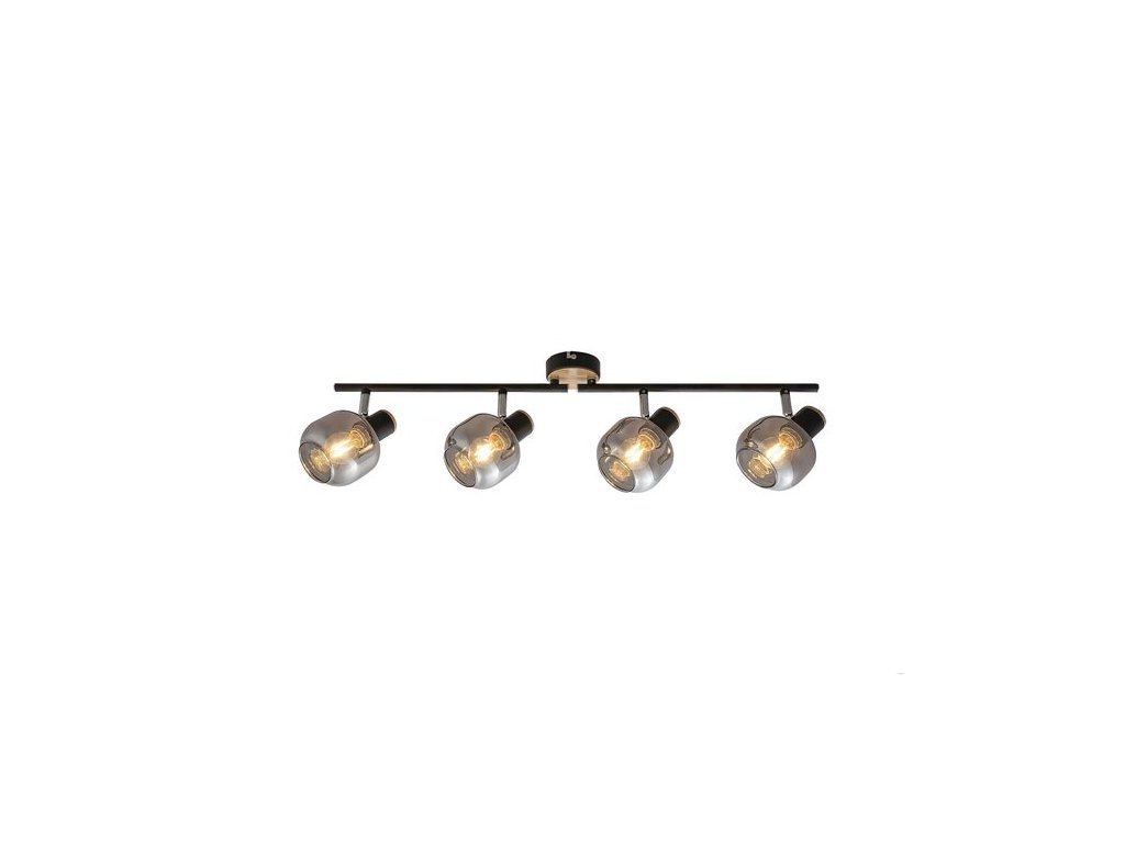 Čtyřnásobné bodové svítidlo Salazar vyrobeno z kombinace kovu a skla bude charakteristickým a atraktivním doplňkem vašeho domácího zařízení. Doporučujeme ho primárně do obývacího pokoje, ale můžete si ho umístit i na chodbu. Černé tělo má dubový vzor a je doplněno kulatým ozdobným podstavcem a skleněným stínítkem v kouřové barvě. Čtyři stínidla jsou v jedné linii. Díky nastavitelným hlavám svítidla je možné světlo svítidla ovládat podle přání. Bodové svítidlo lze použít se čtyřmi světelnými zdroji s výkonem každého do 40 W, patice typu E14. Světlo je jemně filtrované zpod tmavých stínítek svítidla Salazar, které vyzařují příjemnou a útulnou atmosféru. Aby jste dosáhli dokonalý efekt, doporučujeme používat zdroje teplého bílého světla. Šířka čtverného bodového svítidla Salazar je 700 mm a jeho průměr je 80 mm. Tento model se dodává bez žárovek.