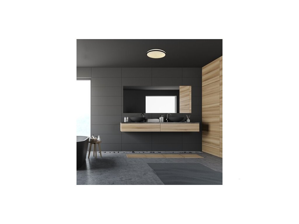 Koupelnové svítidlo Slava s hvězdným efektem bude vynikající volbou, pokud byste chtěli na osvětlení své koupelny použít moderní stropní svítidlo. Černé svítidlo, které je vyrobeno z kovu, je doplněno bílým akrylovým stínidlem. Toto stropní svítidlo obsahuje vestavěný LED světelný zdroj šetřící energii s výkonem 18 W, světelným tokem 1 170 lumenů a životností 25 000 hodin. Inteligentní žárovka má barevnou teplotu 3 000 K a podle toho září teplým bílým světlem. Svítidlo Slava má krytí IP44, které zaručuje, že je chráněna proti vniknutí předmětů do průměru 1 mm a proti stříkající vodě z libovolného směru. Rozměry tohoto koupelnového stropního svítidla jsou následující: průměr 330 mm, vzdálenost od stropu 65 mm. Na tento model nabízíme 5letou záruku.