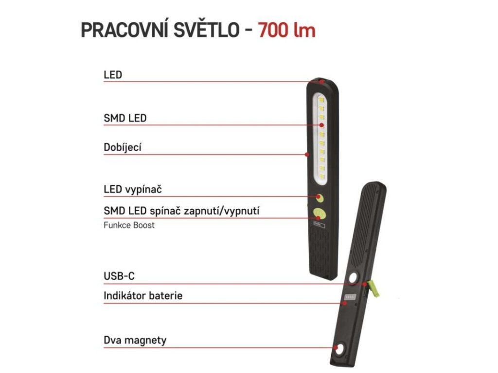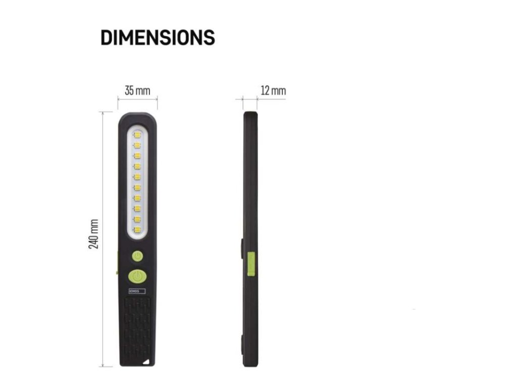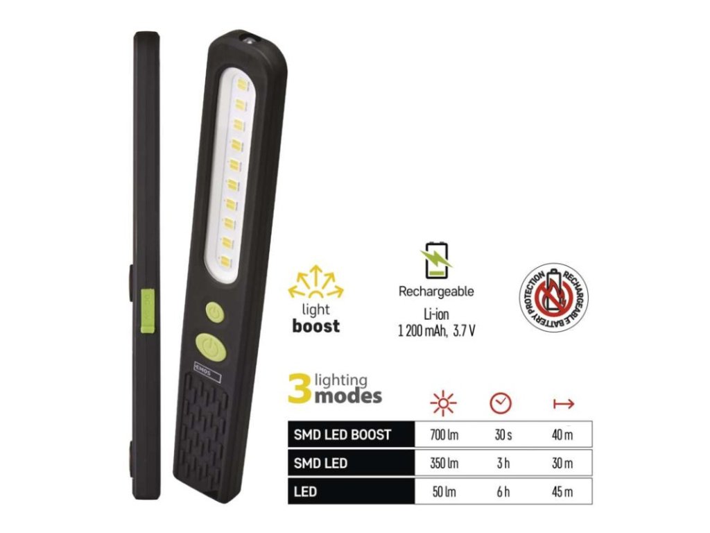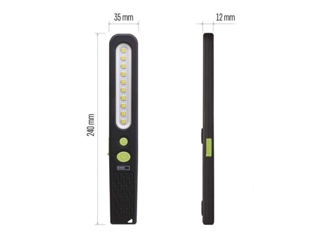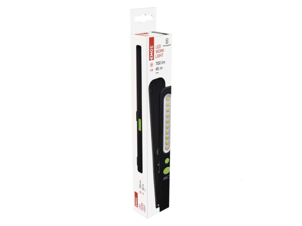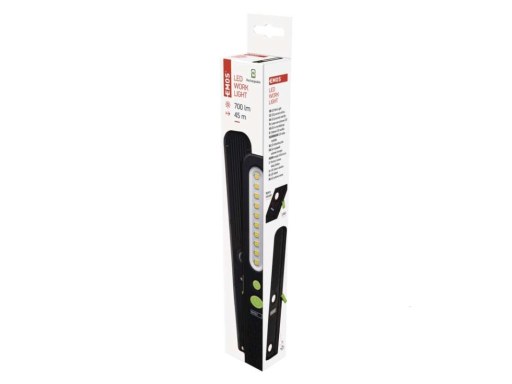 barva: zeleno-černá|baterie součástí balení: ano|doba nabíjení: 2 h|doba svícení: 3–6 h|doba svícení detail: SMD LED BOOST – 30 s, SMD LED 100 % – 3 h, LED 100% – 6 h|dosvit: SMD LED BOOST – 40 m, SMD LED 100 % – 30 m, LED 100% – 45 m|fokus: ne|hmotnost: 100 g|LED indikace nabíjení: ano|LED indikace stavu akumulátoru: ano|materiál: ABS plast + guma|maximální dosvit: 45 m|maximální světelný tok: 700 lm|nabíjecí: ano|napájení: Li-Ion|nárazuvzdornost: ne|počet režimů svícení: 3|příslušenství: USB kabel|prodejní obal: 1 ks, krabice|režimy svícení: SMD LED BOOST, SMD LED 100 %, LED 100 %|rozměr: 37 × 14 × 240 mm|speciální funkce: funkce ochrany baterie, funkce light BOOST|světelný tok: SMD LED BOOST – 700 lm, SMD LED 100 % – 350 lm, LED 100% – 50 lm|typ baterie: 1 200 mAh/3,7 V|typ napájecího konektoru: USB C|voděodolnost: ne|vybavení: 2× magnet|záruční doba: 2 roky|zdroj světla: SMD LED + LED|značka: EMOSDoplňkové parametry