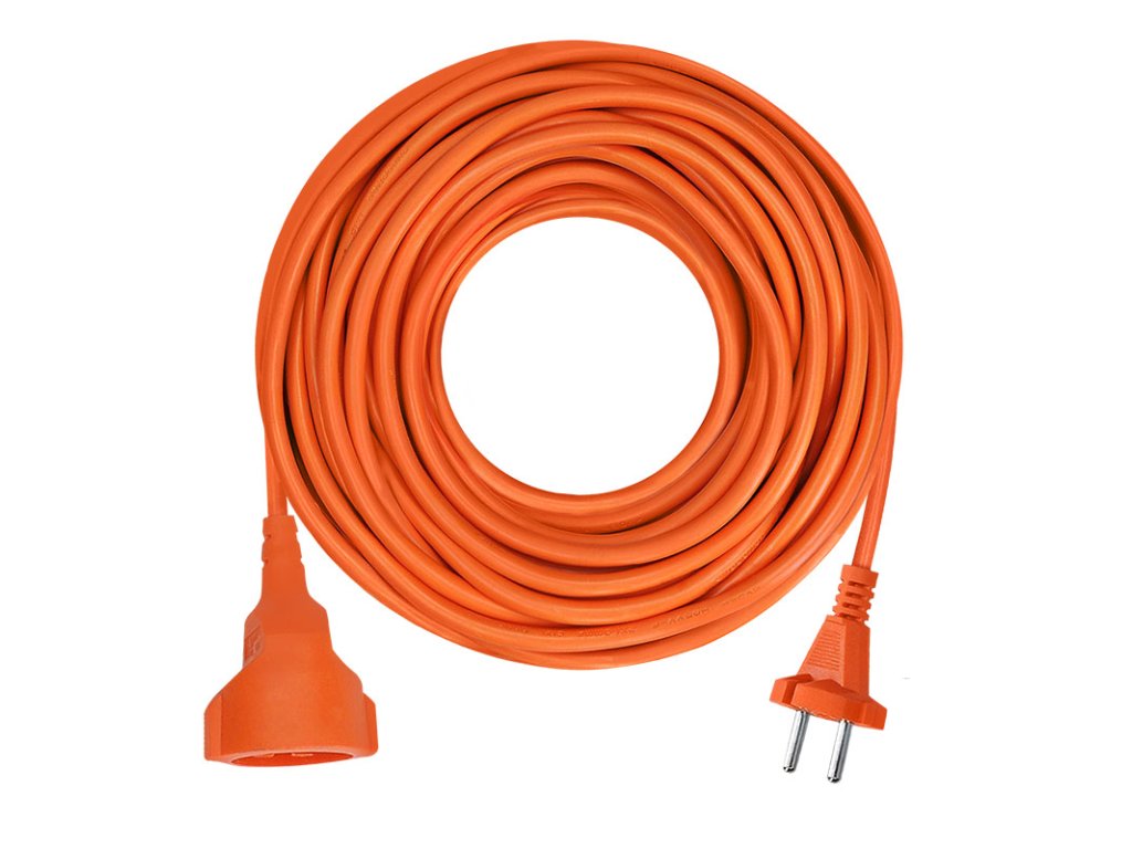 Oranžový prodlužovací kabel s délkou 10 metrů a jednou zásuvkou je ideální k prodloužení elektrické energie na zahradě nebo v dílně. Vhodný pro připojení zařízení s dvoupólovou neuzemněnou vidlicí přívodní sňůry, kterými je většina elektrických nástrojů. Barevné odlišení od okolního prostředí zvyšuje bezpečnost při práci.